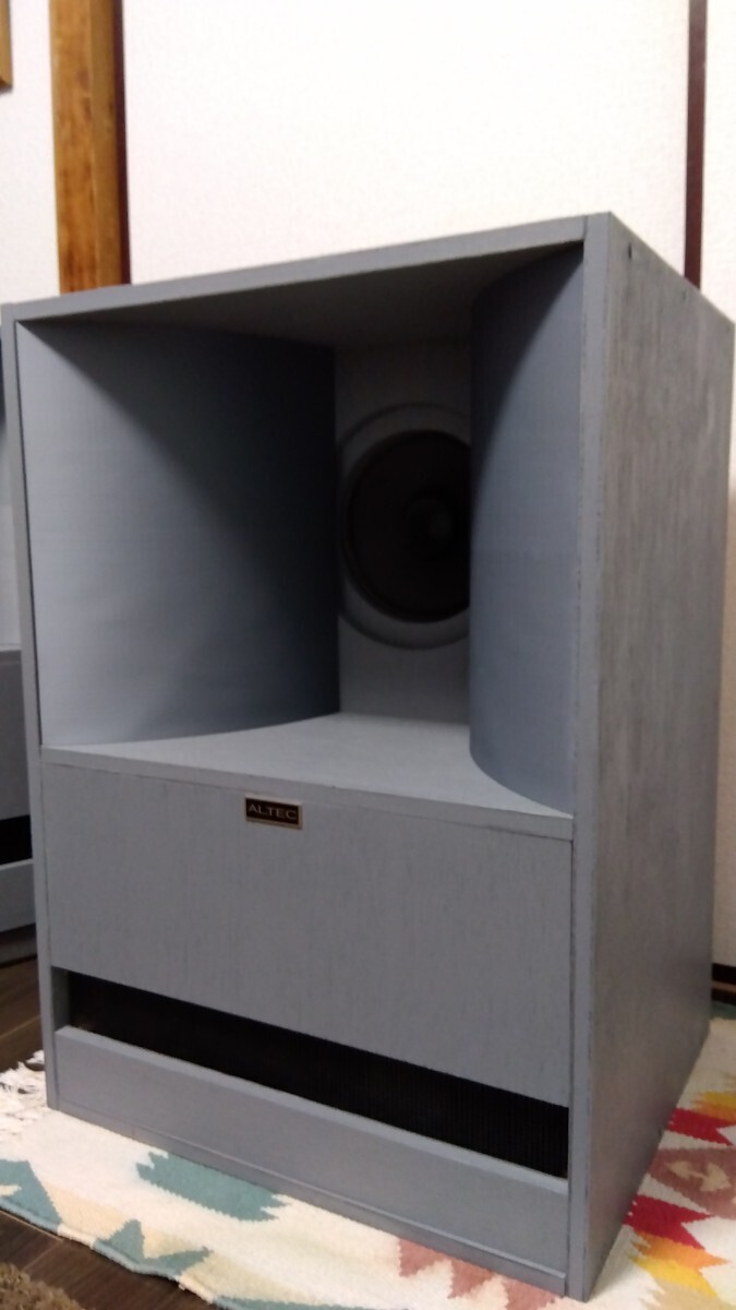 アルテックA7の3分の2サイズでレプリカをつくりました。スピーカーユニットは20cmのアルテック209-8Aと同じElectroVoiceブランドの209-8Aのヴィンテージを使用しています。ですので多少の錆やヨゴレ、コーン紙の一部にシワがあったりしますが音質に影響はありません。15ミリの合板を使用し軽量化、箱の共鳴を生かすため吸音材は少ない目にしてあります。好みに応じて増量して頂いても結構です。またクレードアップ出来るようにユニットが付いているパネルをユニットごと外せば25センチウーハーが取り付け出来るようになっています。209-8Aユニットはカタログデータでは最大入力15ワット、音圧レベル94dBとなっていますがホーンロードの効果により98dBくらいになっています、特に2200Hzあたりをピークに100dBを超えていますのでギター、ドラム、管楽器の衝撃音はこころを震わせるものがあります。低音はよくしまりながらも奥行きと拡がりを表現します。将来2ウェイにグレードアップすれば更にキメの細かい綺麗な高音を楽しめることでしょう。この箱は6畳から20畳向きです、Voice of theTheaterでなく| 出价者 | 信用 | 价格 | 时间 |