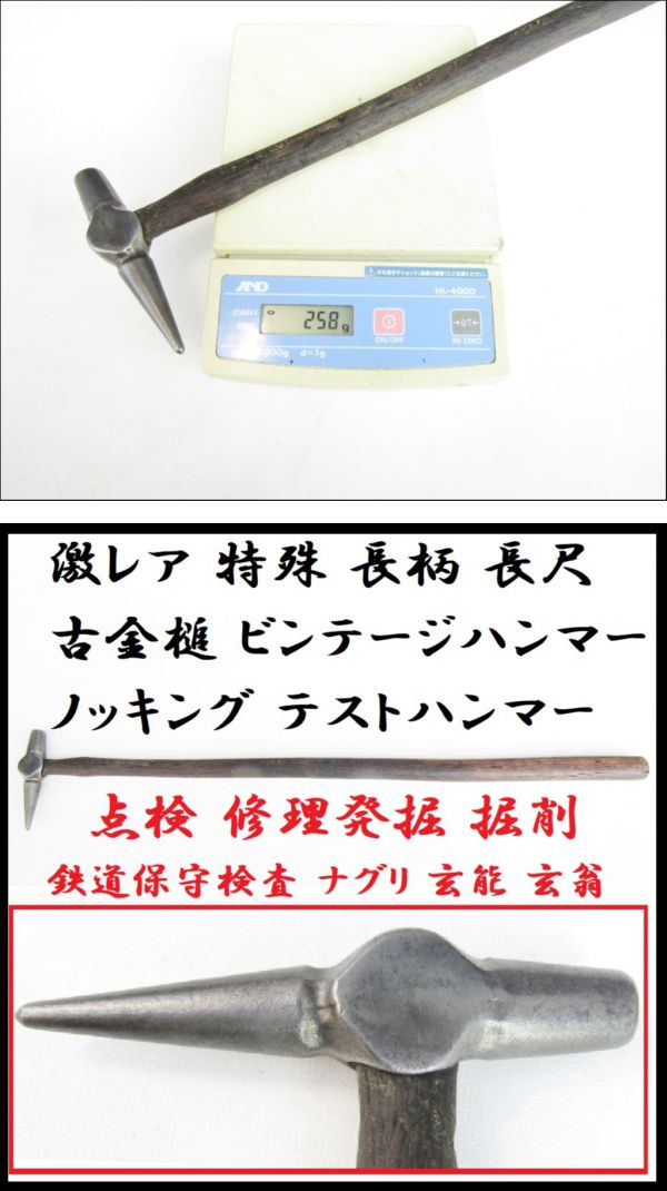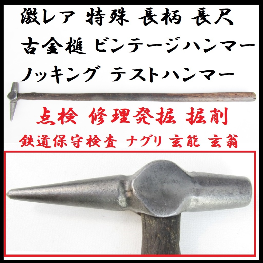 | 激レア 特殊 長柄 長尺 古金槌 ビンテージ ノッキングハンマー テストハンマー 点検 修理ハンマー 先の尖った ヘッドハンマー 発掘 掘削 鉄道保守検査 ナグリ 玄能 玄翁 古民家 | |