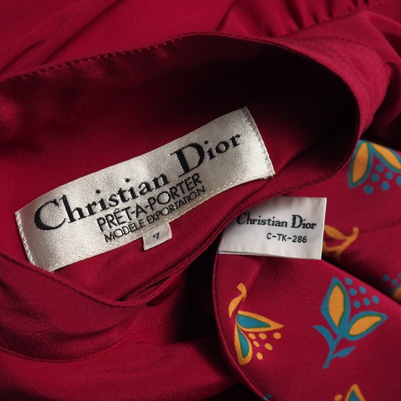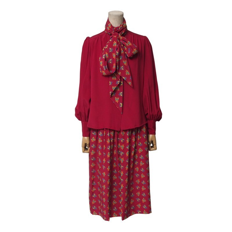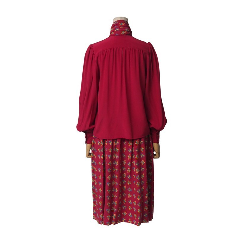 | GS5640★VINTAGE Christian Dior クリスチャンディオール ボウタイ付き ブラウス フレアスカート セットアップ レッド サイズ7 | |||
