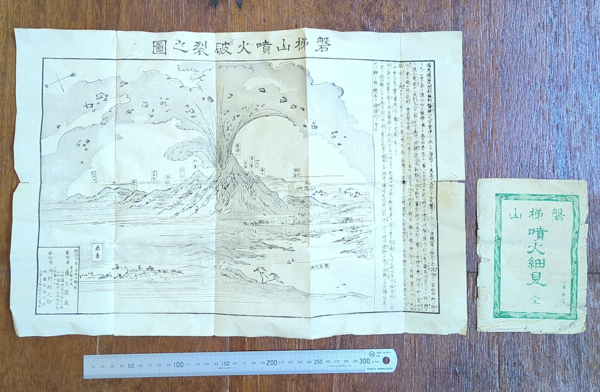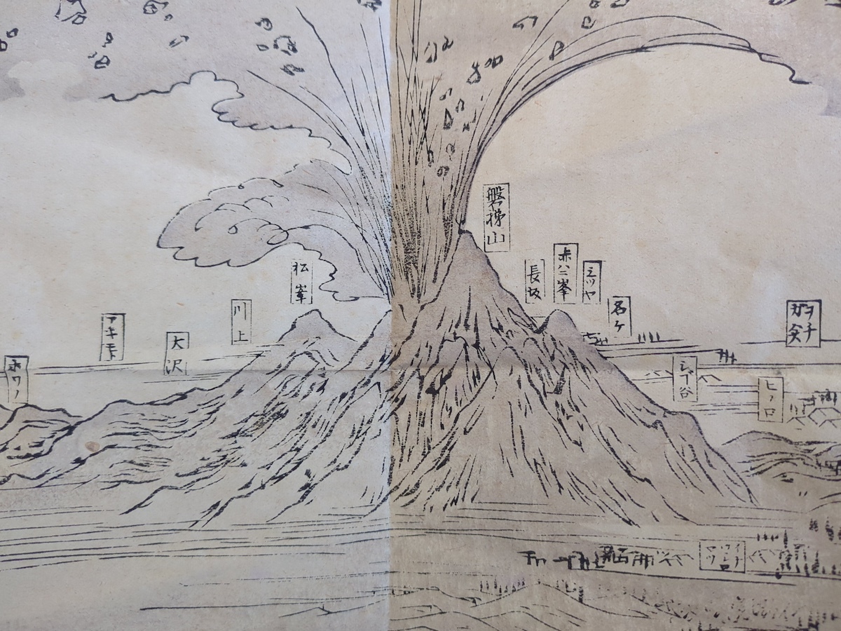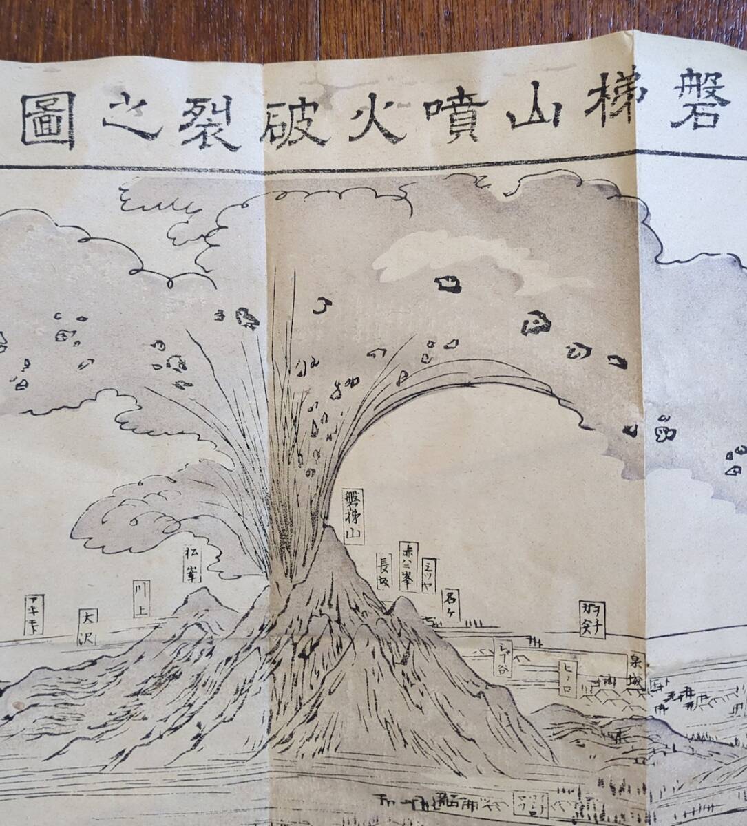 鳥瞰図 磐梯山噴火破裂之図 袋付 噴火細見 古地図 明治21年 木版画 刷物 和本 浮世絵 錦絵 古地図 和書 福島県耶麻郡 会津富士 火山