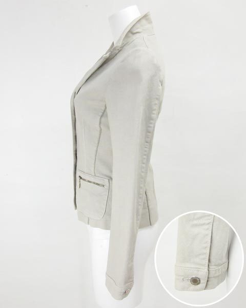 | コメント | 重ね着に便利なデニムジャケット 両サイドにゴールドのラインがはいっていて、さりげない おしゃれなデザインとなっています ボタンにはロゴが入っていてブランドアピールも◎ |