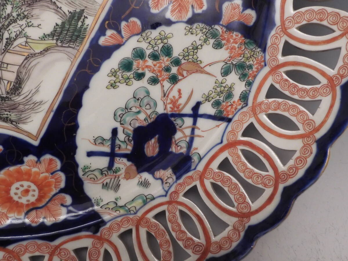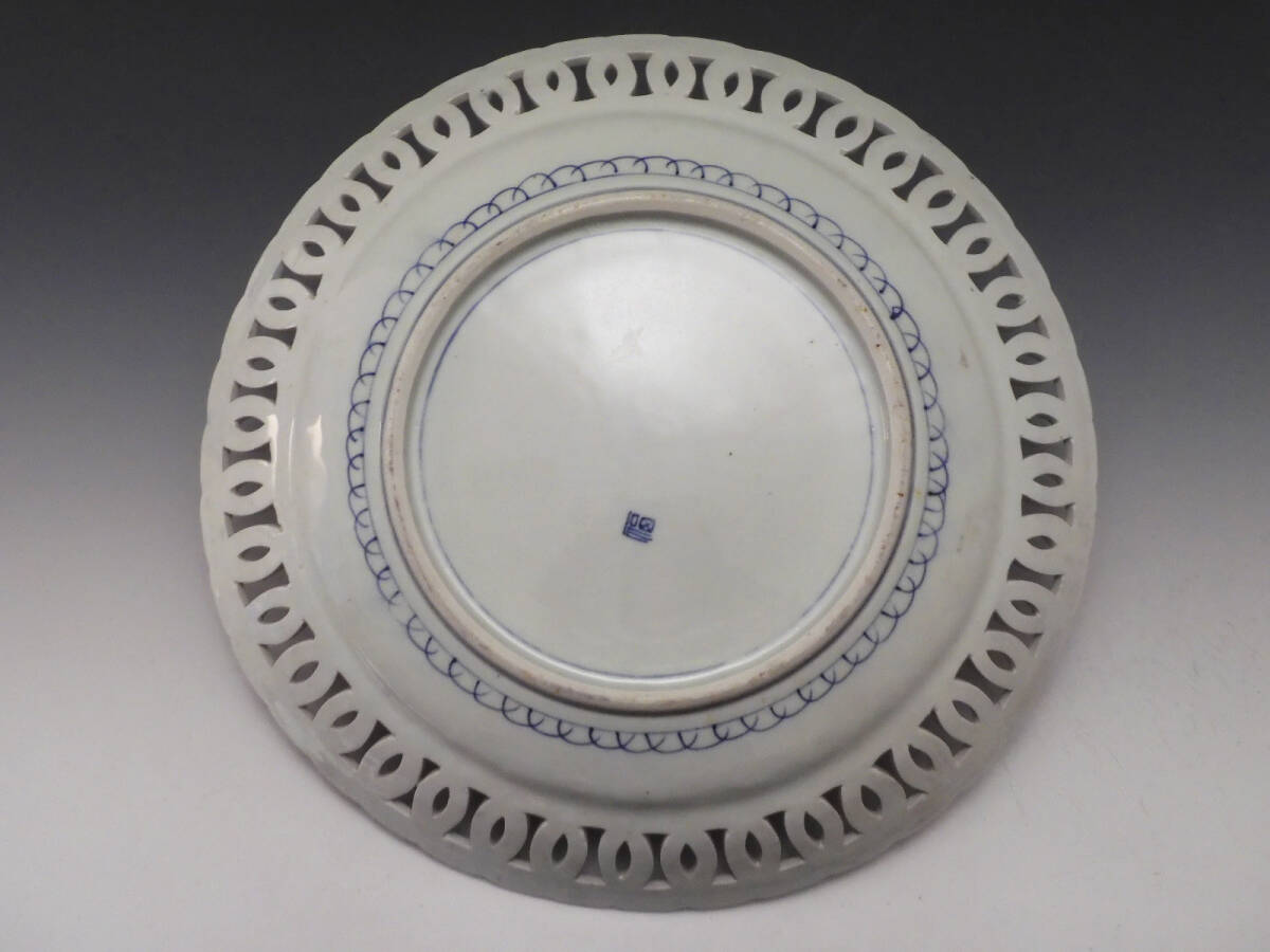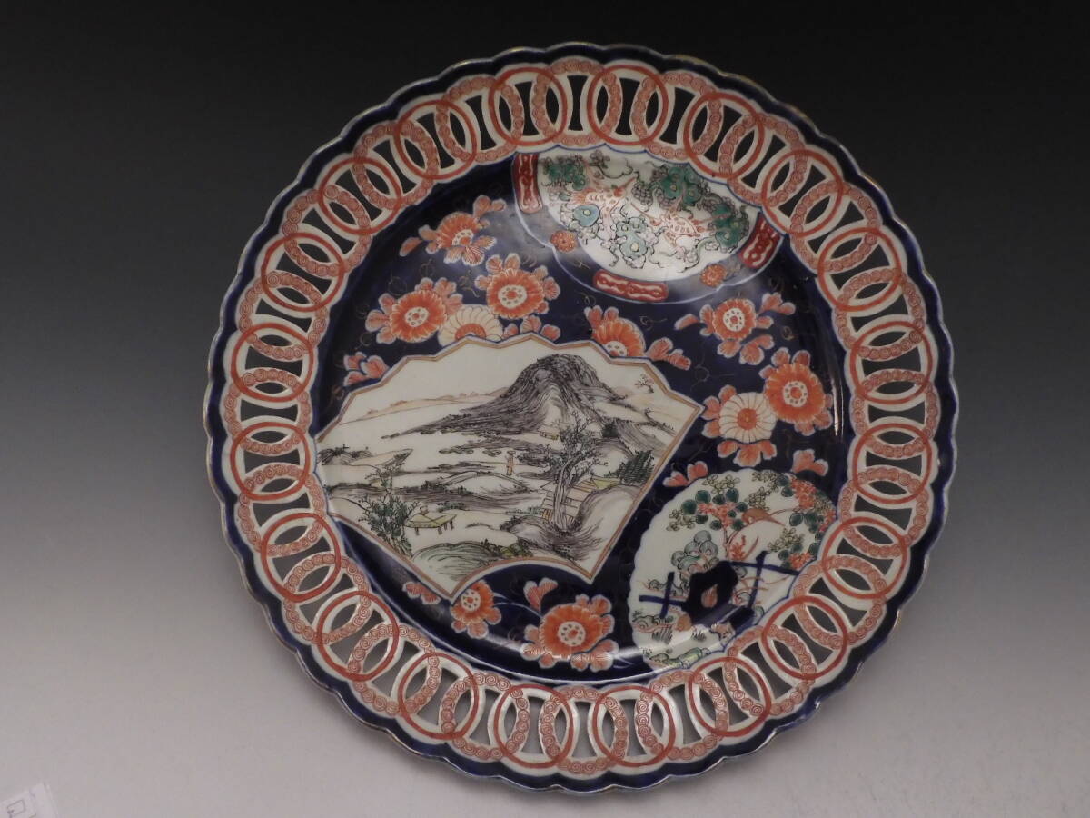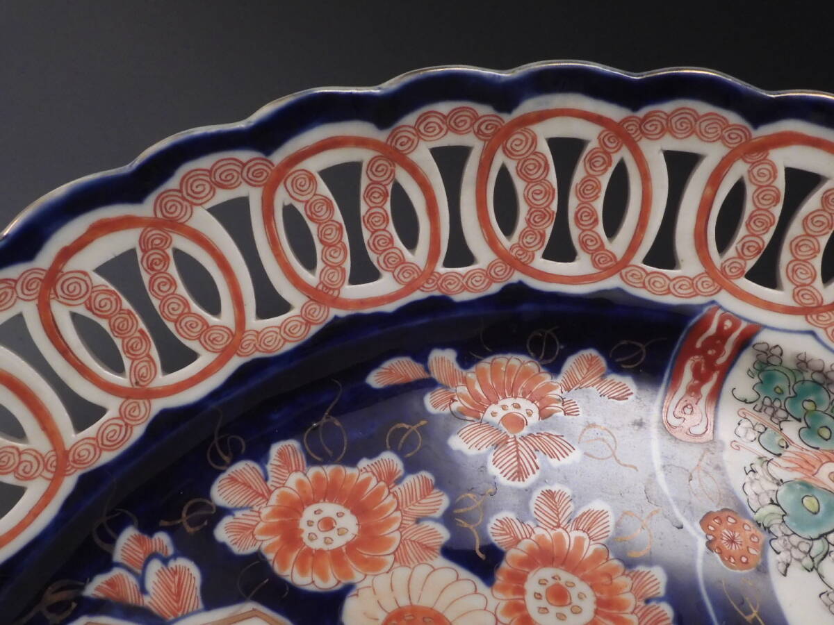 | ○梗○古伊万里 金彩色絵 花鳥文 七宝透 大飾皿 41㎝ 無傷 江戸元禄 F5◇ |