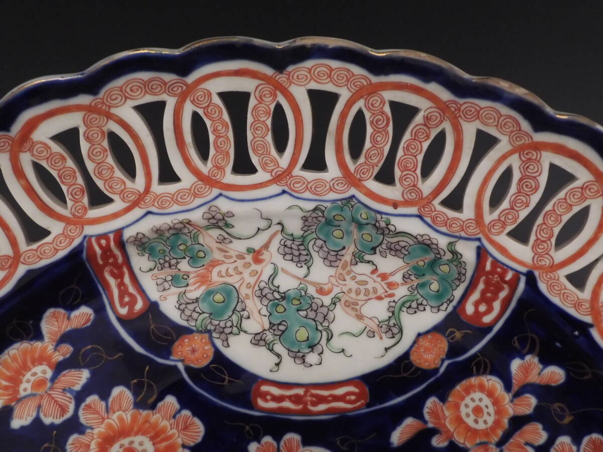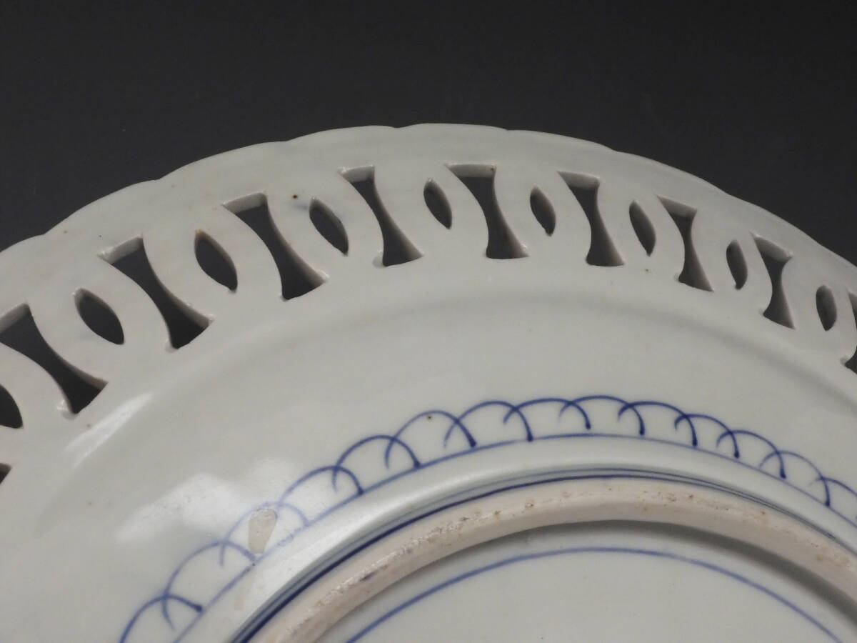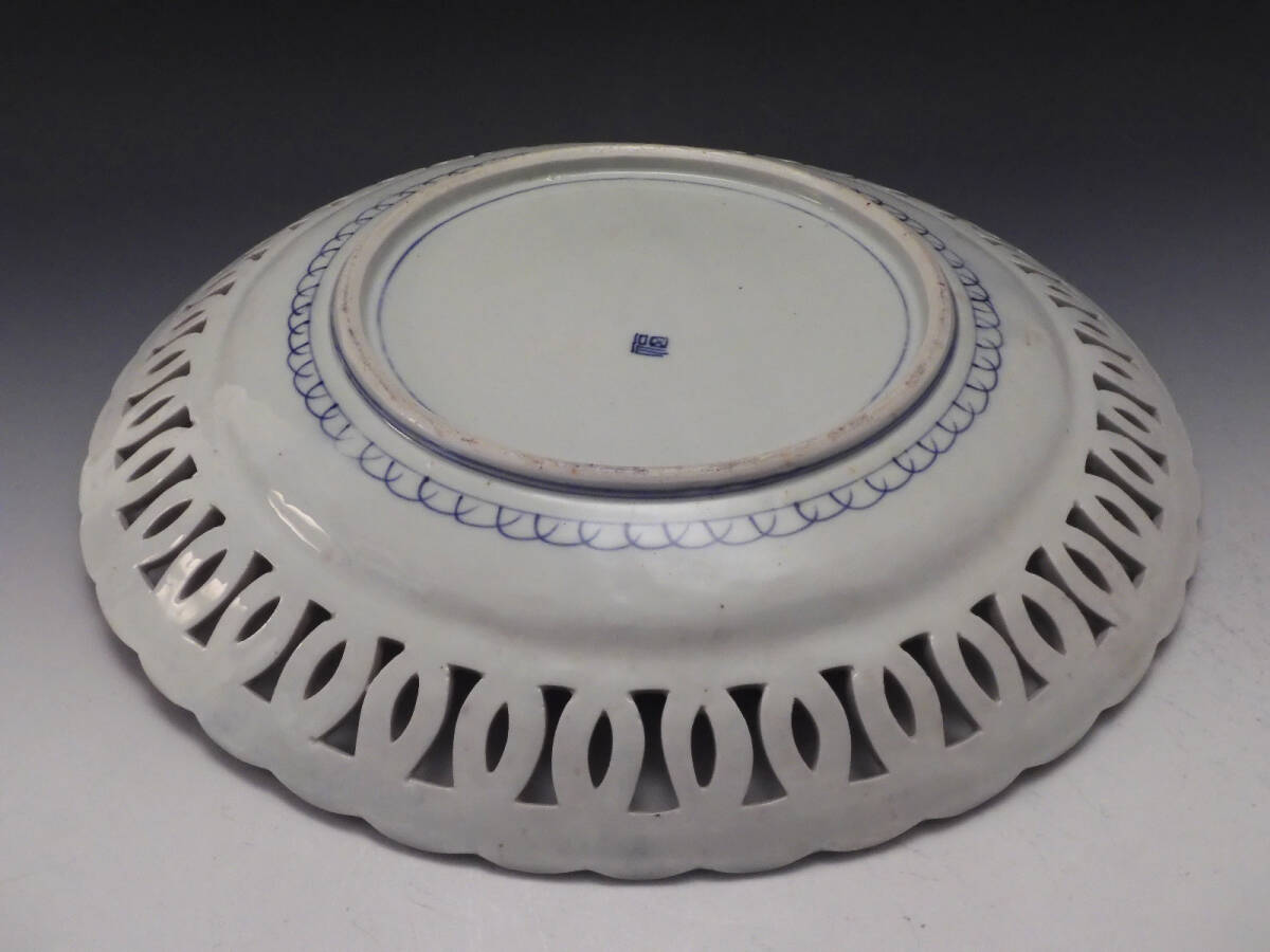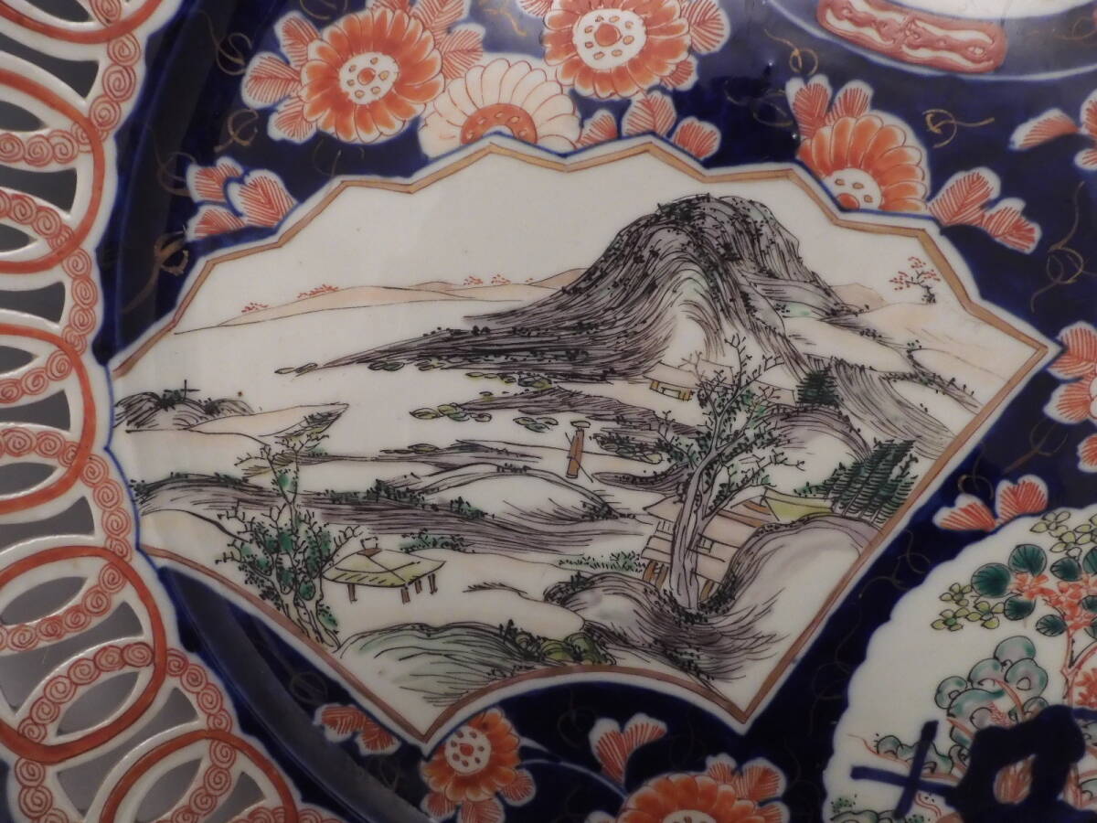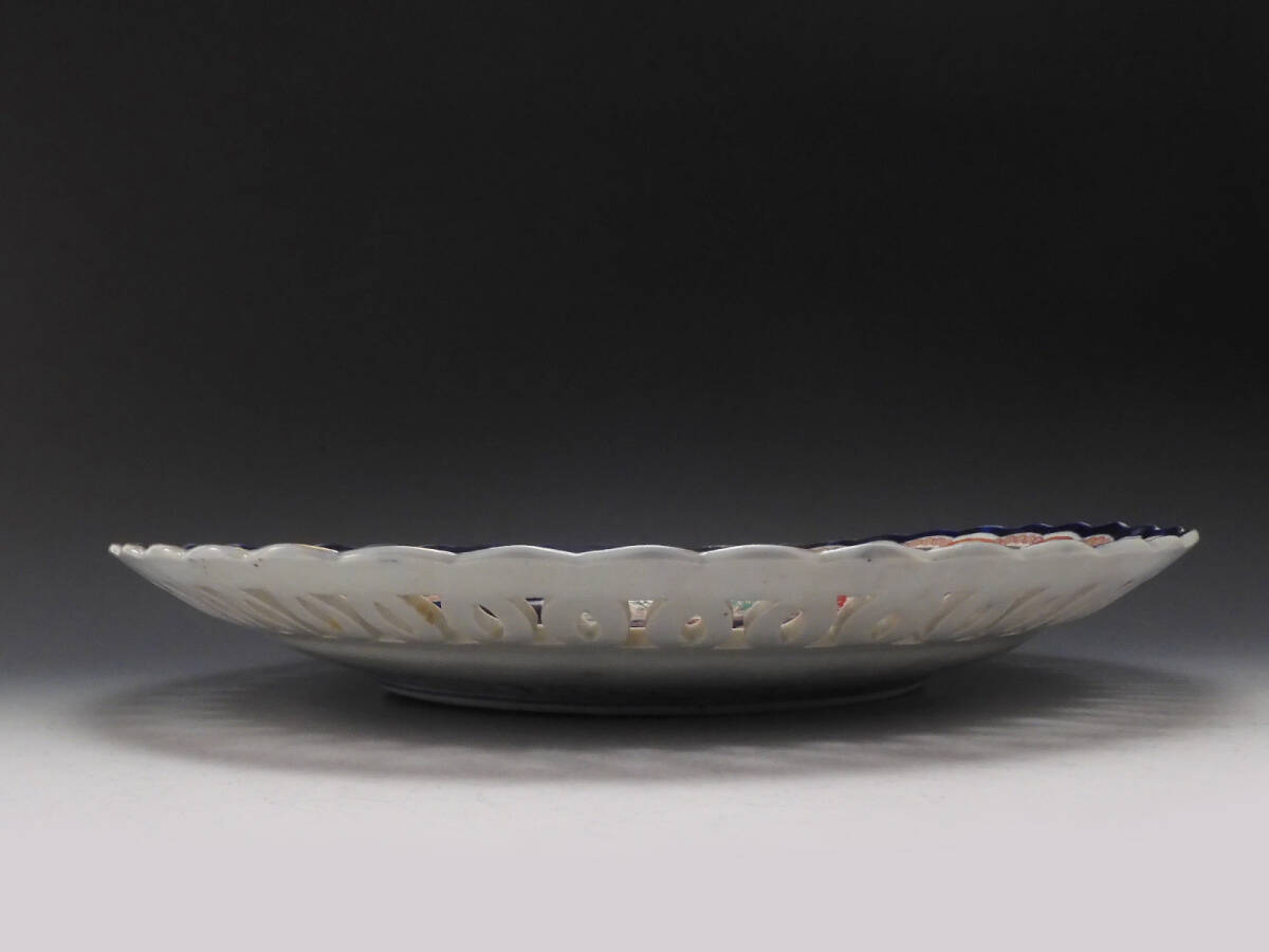 | ○梗○古伊万里 金彩色絵 花鳥文 七宝透 大飾皿 41㎝ 無傷 江戸元禄 F5◇ |