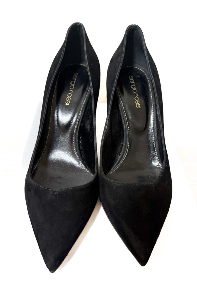 セルジオ ロッシのブラックスエードパンプス。無駄のないシンプルなデザインが、足元をすっきりと美しく見せてくれる一足です。さりげない上質感が装いを選ばず、デイリーからフォーマルまで幅広いシーンで活躍します。| 出价者 | 信用 | 价格 | 时间 |