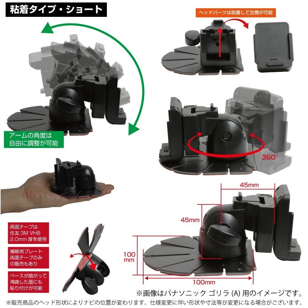 01R-A[モバイクス]パナソニックGorillaゴリラCN-G730用カーナビ取付台座ブラケットスタンド両面テープ貼り付けタイプショート