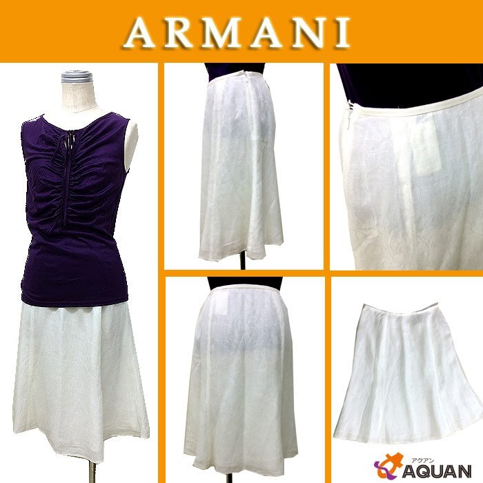 | PRコメント | アルマーニよりシルクに麻を織り込んだ涼しげな綺麗なフレアスカート♪ 織り出されたボタニカル柄が爽やかです♪ 夏にサイコーな白コーデは今年一押しですね♪ 仕様:MADE IN ITALY |