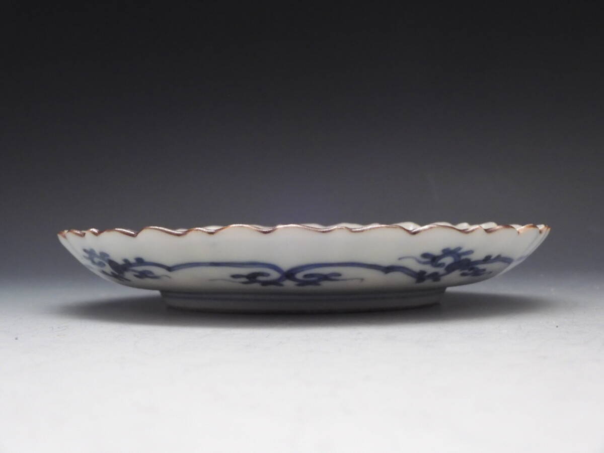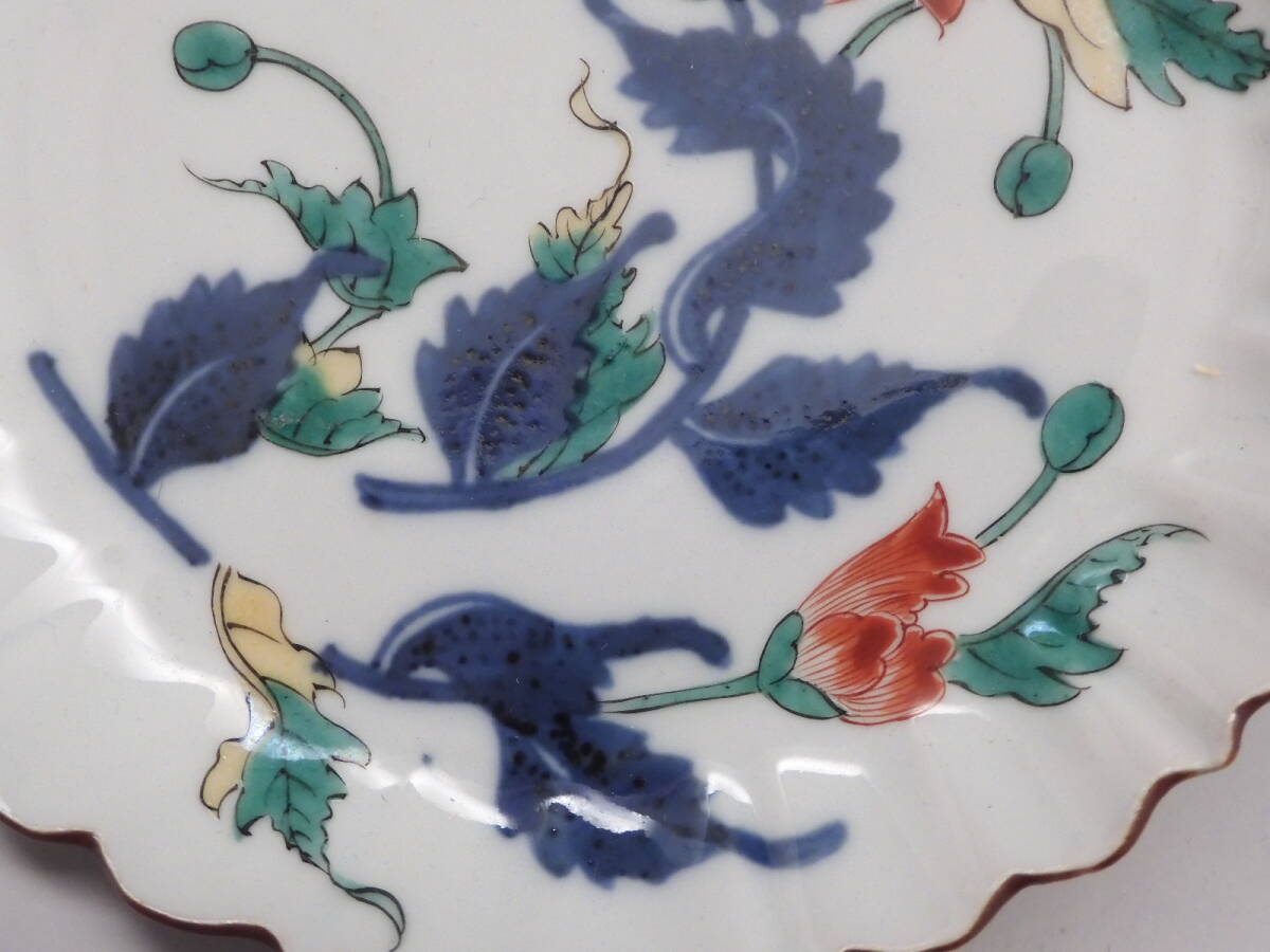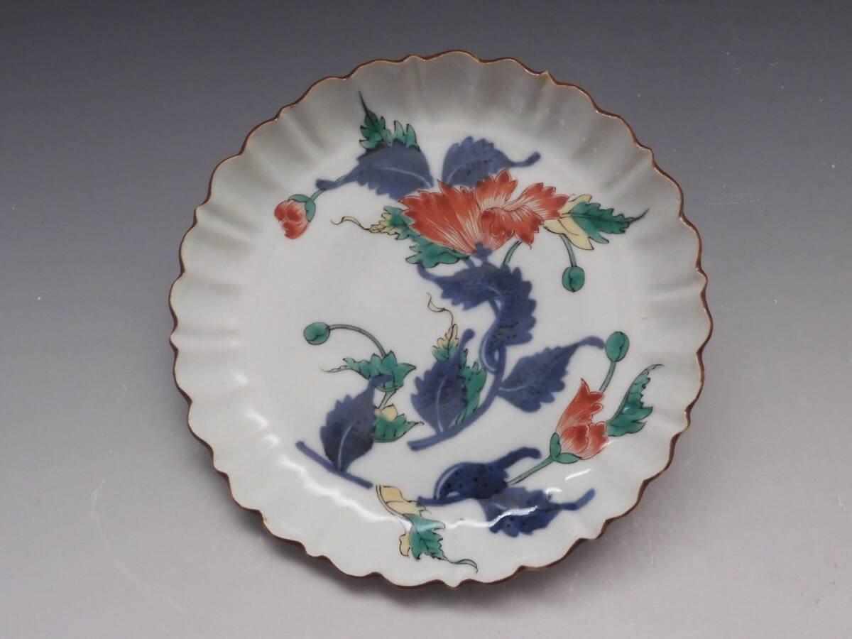 | ○梗○古九谷 色絵 花草文 輪花 飾皿 14.5㎝ 無傷 江戸期 K58◇ |