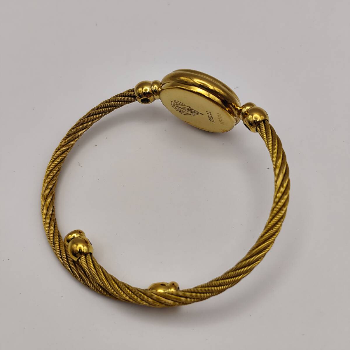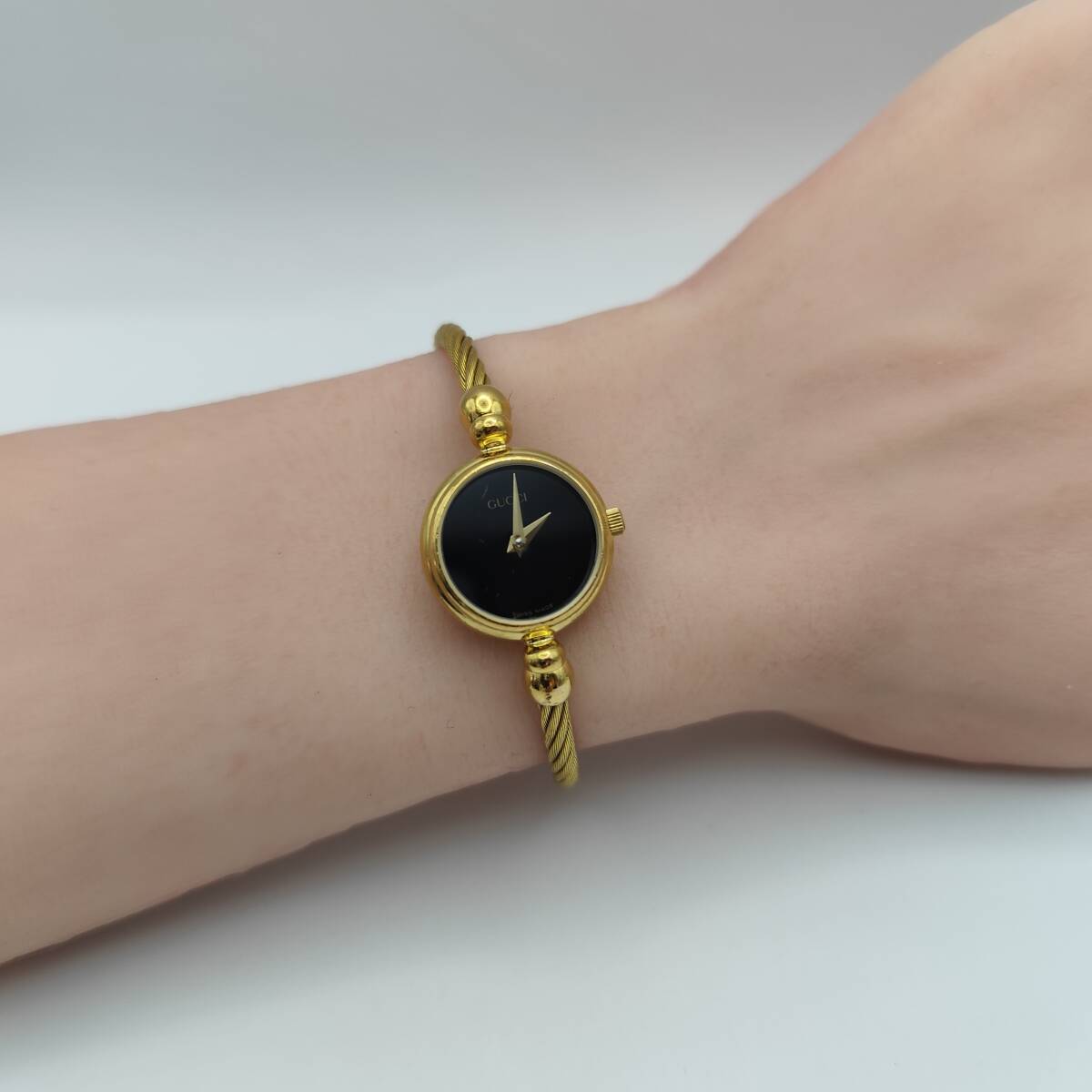 華奢なデザイン ゴールドのブレス ブラックの文字盤で華やかな印象の腕時計です。