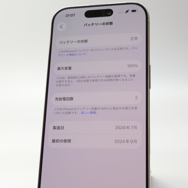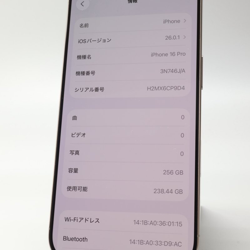 店頭展示品です。■機種 : iPhone16 Pro 256GB ナチュラルチタニウム A3292 3N746J/A
