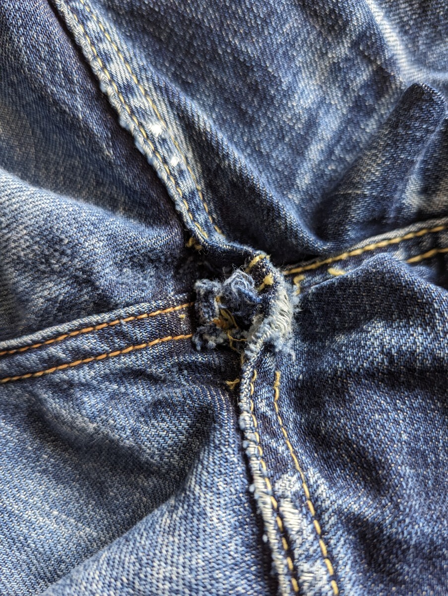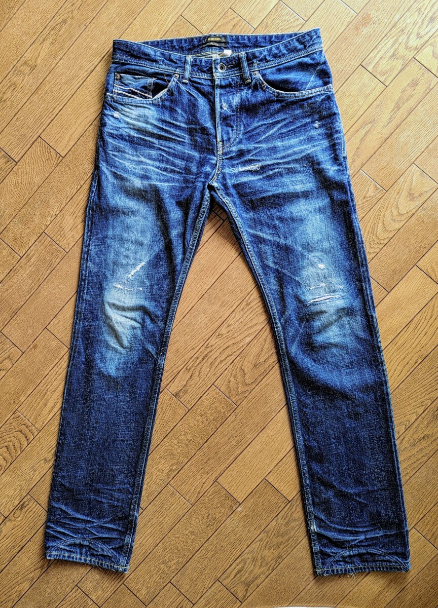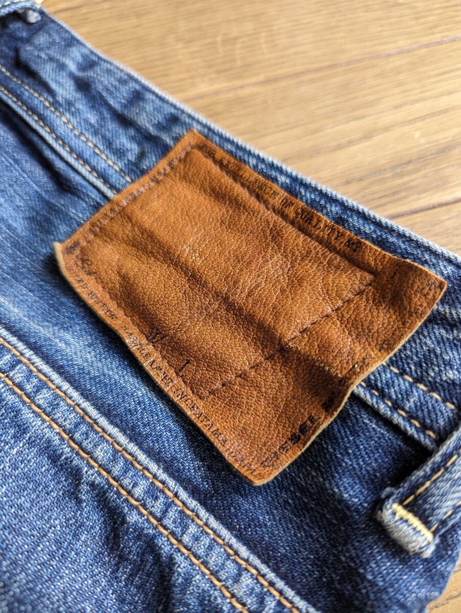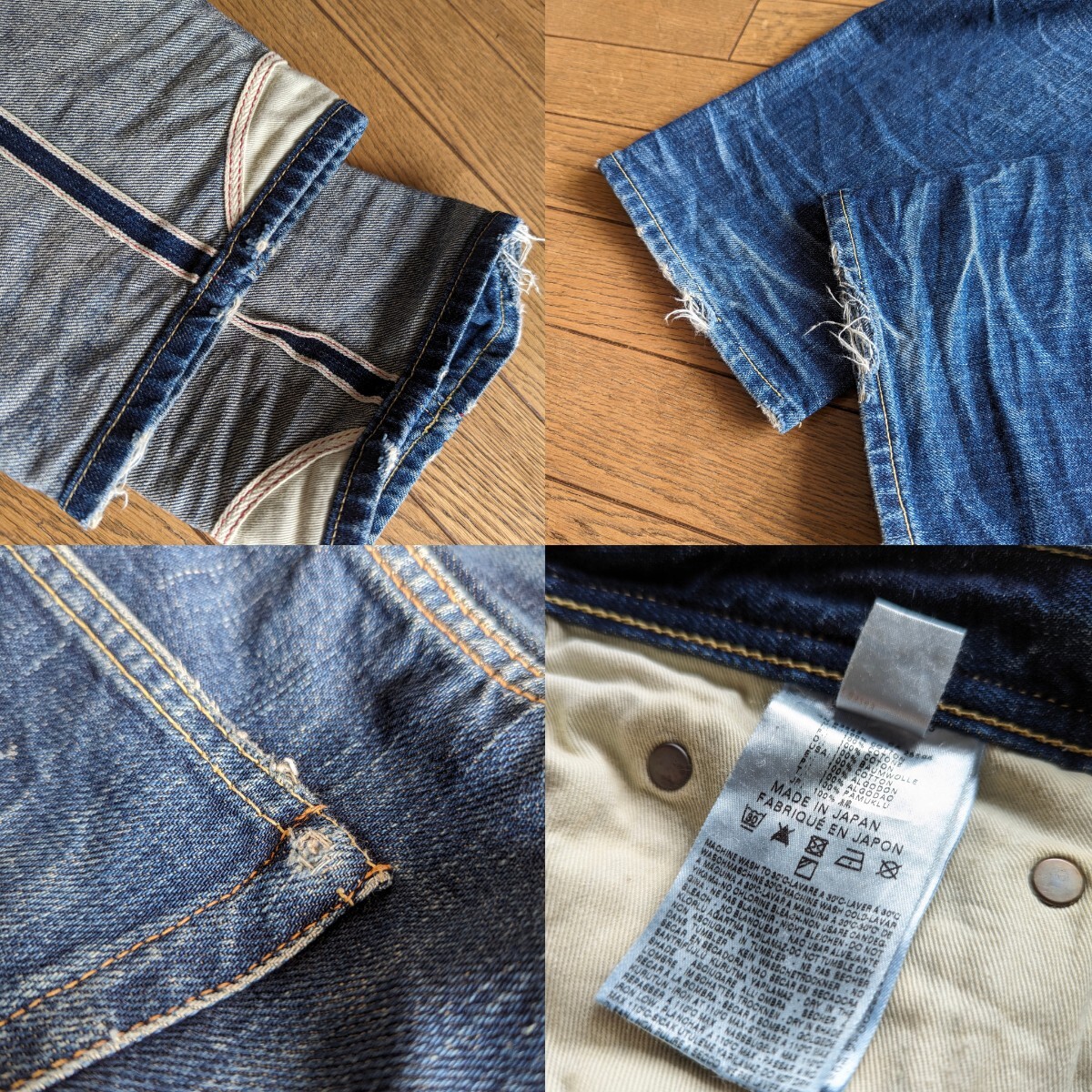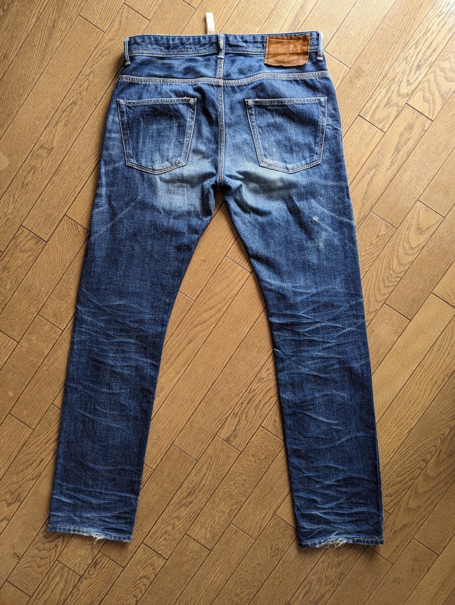 旧式織り機で国産デニムの弱点である、生地の繊細さから若干のダメージ、破れなどありますが、好みによって補修も加えてまだまだしばらく履けると思います。時間は経過してますが、さほど履いてない割に味は抜群によくでています。