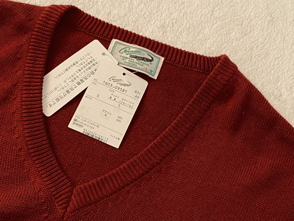 新品【クロコダイル】 紳士長袖セーター お色はエンジ V首タイプ 胸元にマーク刺繍入り ご家庭の洗濯機で洗濯可能(ネット使用) ★サイズ L チェスト:96〜104cm 身長:175〜185cm (実寸)着丈:約68cm 身幅:約54cm 肩幅:約51cm 袖丈:約61cm ★品質 アクリル50% 毛50% |