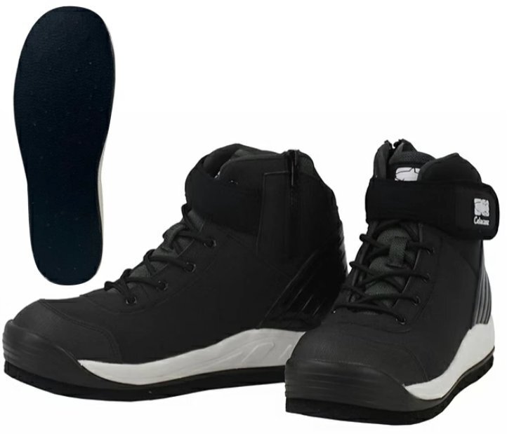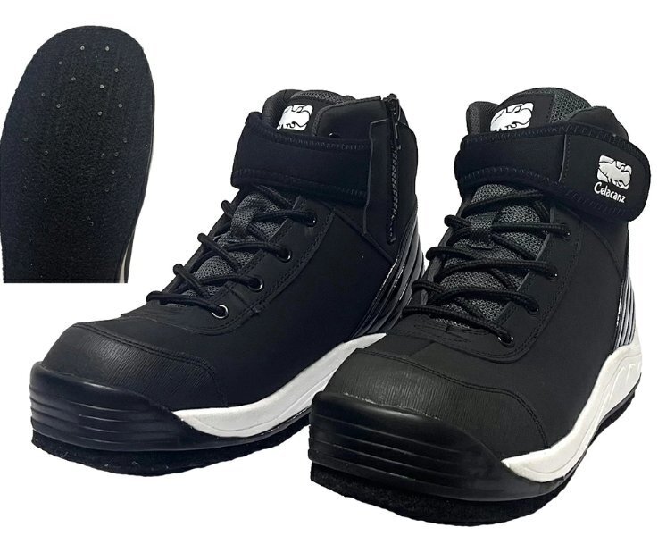 | エクセル フェルトスパイクシューズ ソール:フェルトスパイクシューズ カラー:ブラック×ホワイト Lサイズ(25.5-26.0) 足場の悪い釣り場で、滑らずに歩行するために設計されたフェルトスパイクシューズ フェルトに金属のスパイクがついているフェルトスパイク底が、ゴツゴツした岩場や、海藻が生えた滑りやすい場所でもグリップ力を発揮 ハイカットデザインと伸縮性のあるマジックベルト機能により、足全体をしっかりとホールド グリップ力に優れたスパイクソールで、磯場での歩行安定性も抜群です また、サイドファスナーの採用により、着脱がスムーズに行えます |