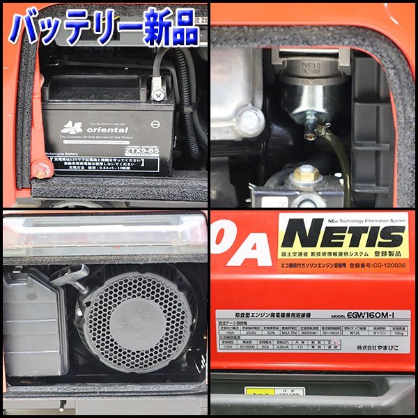 ■最大溶接電流160A、ガソリンエンジン溶接機 ■溶接と交流電源の同時使用も可能(0.2kVA程度) ■3.2kVAインバータ発電で高品質な交流電源を供給します。 ■エコモード搭載さらに低騒音・低燃費 ■超低騒音型建設機械指定機 ■写真は現物を撮影しております ■写真に掲載している内容がお渡しする商品の全てとなります。 ■掲載のない場合、付属品はございません。 |