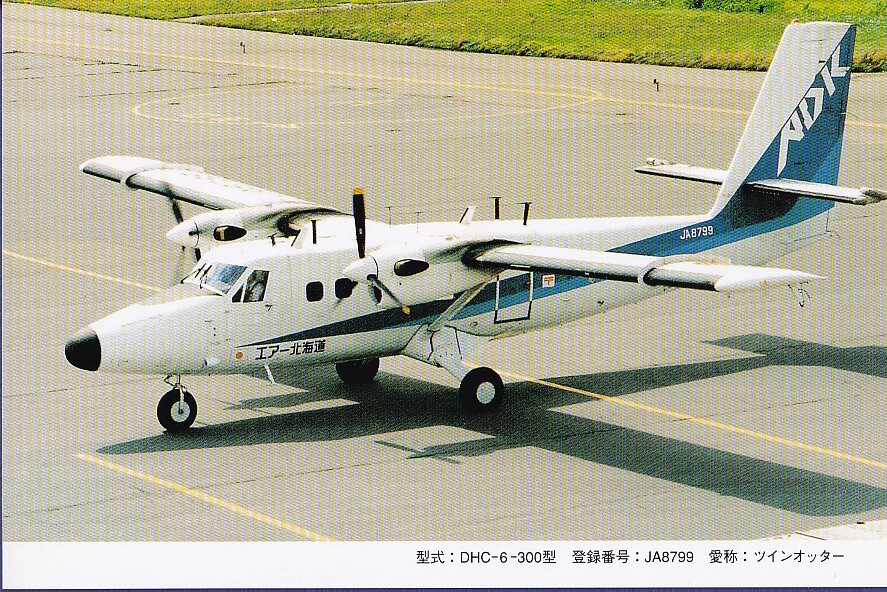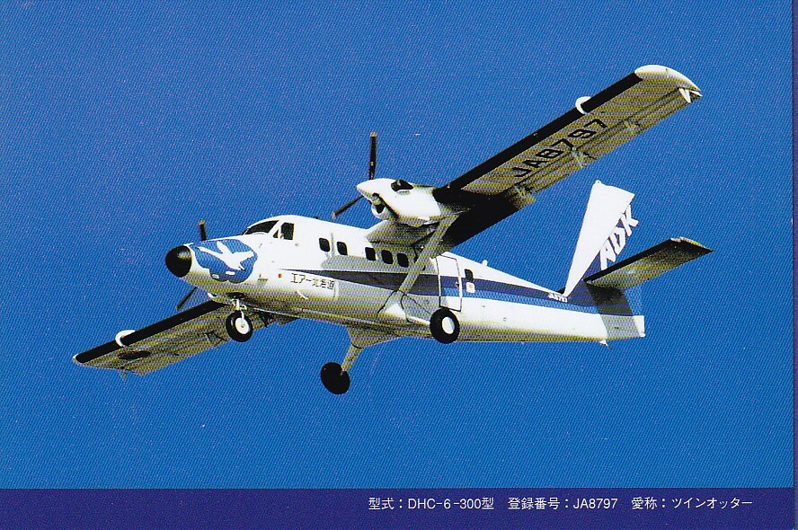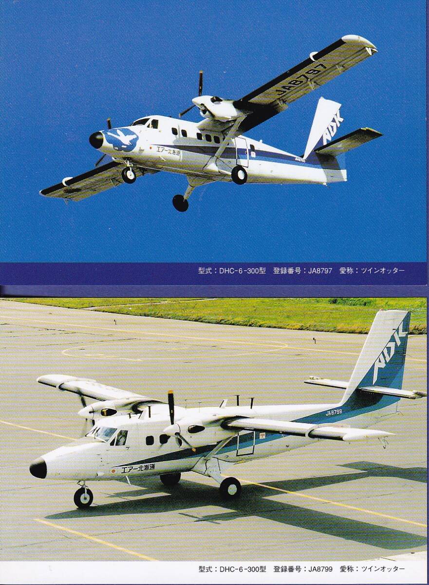 エア北海道:設立 1994年4月5日、エアーニッポン(80%)/北海道(20%)の共同で設立した第三セクター・エアライン。運航開始:1994年7月22日、エアニッポン運航路線を継承した。運航機材:デハビランドDHC-6-300(19人乗り)、2機(JA8797,JA8799)。運航停止:2006年3月31日、JALグループの北海道エアシステムが路線を継承した。
