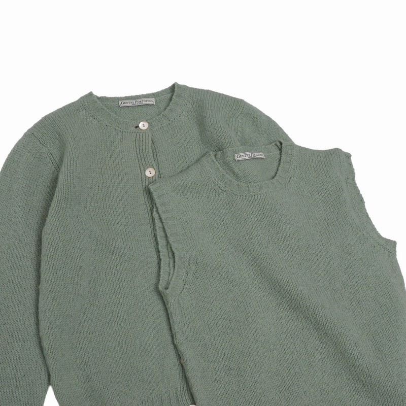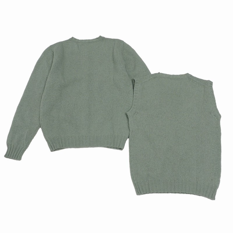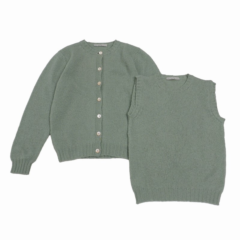 | TJ7083=イタリア製*ジェントリー ポルトフィーノ*シェットランドウール*アンサンブルニット*カーディガン*ベスト*サイズ40*グリーン系 | |||