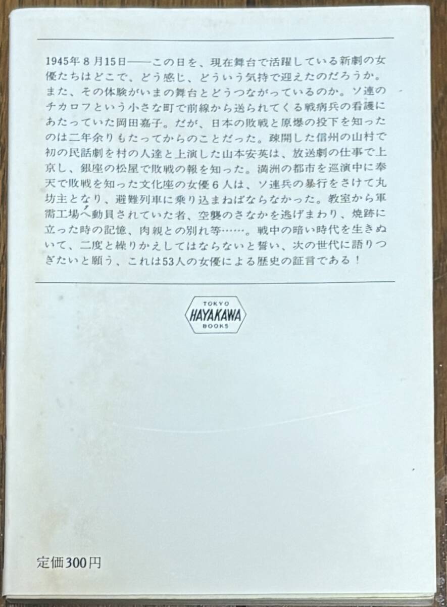 日本の舞台、新劇人の53人の女優たちが終戦の年前後にどのような体験と感想をもっていたのかを語っております。| 出价者 | 信用 | 价格 | 时间 |