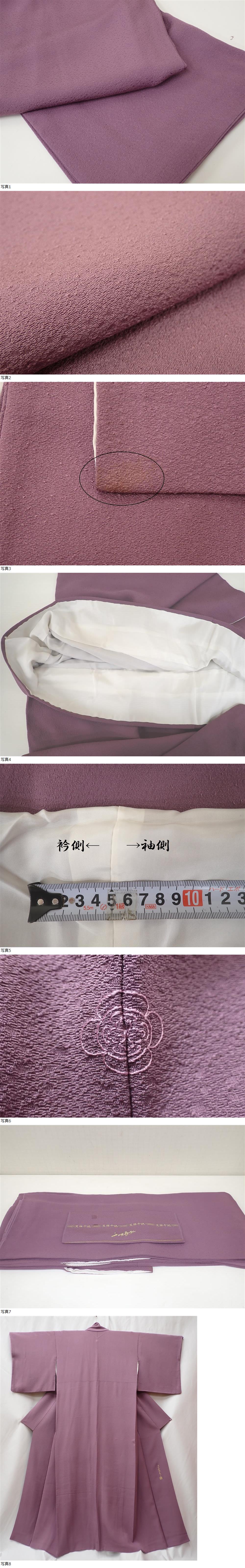 友禅作家 千地泰弘 落款 色無地 訪問着 身丈155.5cm(+8cm) 裄丈64.5cm 古代紫 一つ紋 友禅千地 | ||||