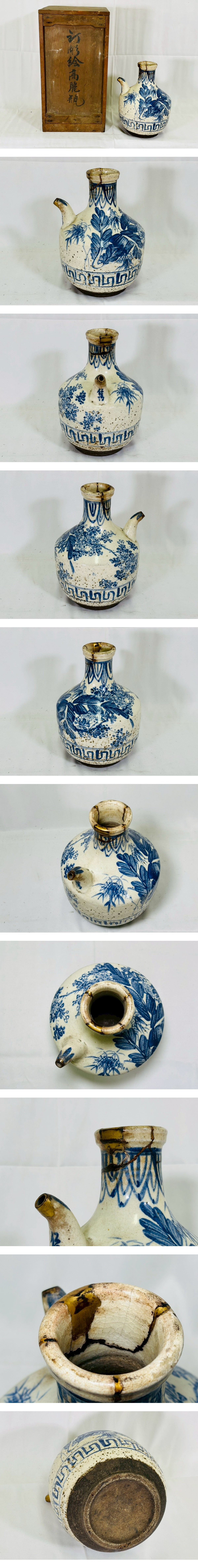 ●【骨董】高麗時代?古染付竹笹青花文徳利 水注 木箱入 完品級 伝来品 金継ぎ修理有 唐物 古美術 染絵高麗瓶 時代物 煎茶道具 ■本体サイズ:横幅 18cm/縦幅 16cm/高さ 24.5cm ※素人寸法の為、若干の誤差はご了承ください。 ■状態につきましては経年に伴うスレ・汚れ・小キズ などが見られます。 ※その他の細かな状態は写真にてご確認・ご了承の上 ご入札くださいませ。 ●こちらの商品などは時代物や古いお品・骨董品となり ますので、細かな状態を気にされる方・神経質な方の ご入札はご遠慮くださいませ。【ZN】 |