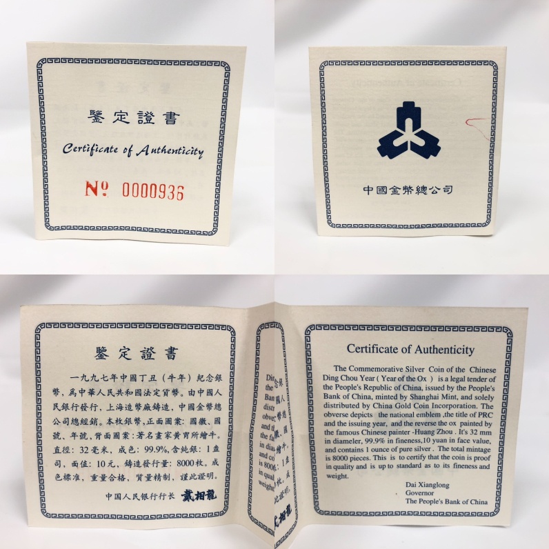 〇中国10元 干支銀貨 1997年 丑 SV1000 / 梅花 1997年 丑 SV900 ・中国10元 干支銀貨 1997年 丑 SV1000 ・中国10元 梅花 1997年 丑 SV900 商品状態:傷や汚れあり ※詳細は画像をご確認ください。
