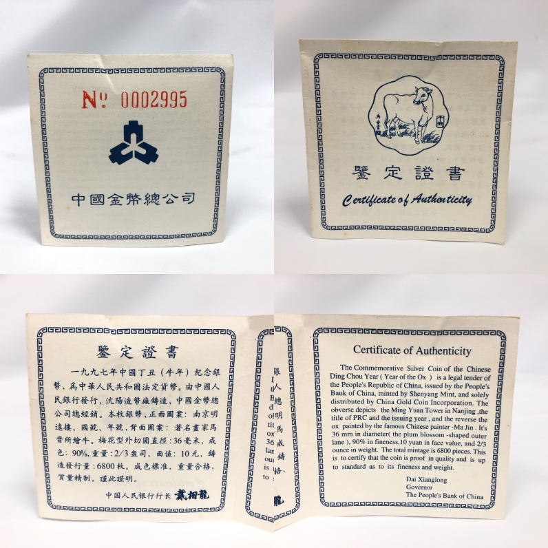 ■【買取まねきや】中国10元 干支銀貨 1997年 丑 SV1000 / 梅花 1997年 丑 SV900 箱付き 重量約63.42g 計2点■ |