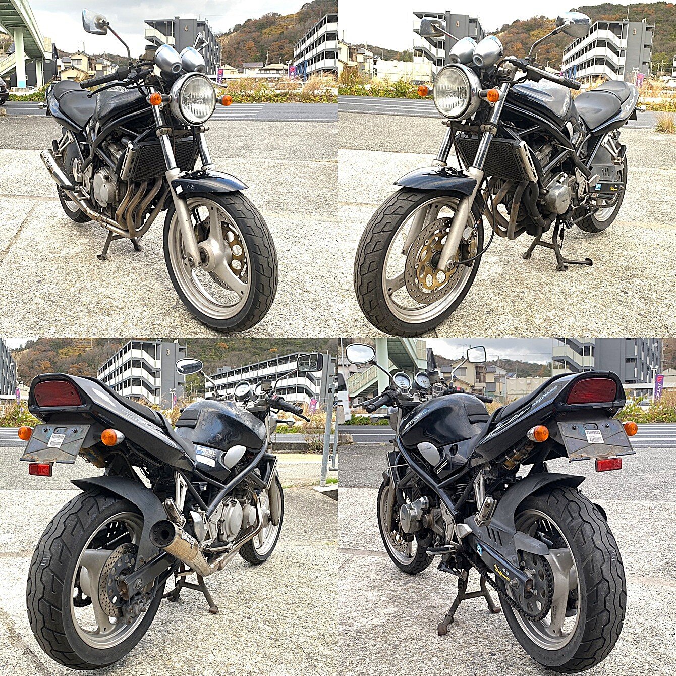 ■アピールポイント■ ☆絶好調!! SUZUKIの人気ネイキッド、 バンディット250 を入庫致しました! ☆4発共にエンジン圧縮もシッカリとあり、始動から敷地内試走行まで問題なく行っております! ☆外観特に大きな破損は御座いませんでした! ☆大人気のオーリンズ製別体タンク式フルアジャスターリアサスペンションやブレンボ製ピッチ40mmフロントキャリパーが装着されており大変格好よく極まっておりました! ☆マフラーは大人気のヨシムラ製 JMCA公認 ステンレス ドラッグサイクロンマフラーが装着されておりました! ☆ピッチ40mmブレンボ対応の社外製キャリパーサポート、社外製のメッシュブレーキホースやスTANAX製ナポレオンミラー、NGK製プラグコードやプラグキャップ、NISSIN製別体マスターシリンダーなどのカスタムパーツが装着されておりました! ☆その他絶好調な実動車より取り外した、まだまだ御使用になれる当時物純正オリジナルパーツが多数御座います! ☆お客様に安心して御購入して頂く為に始動確認、圧縮測定を行っております! ☆修理やレストアをお考えの バンディット250 等のオーナー様、是非このチャンスをお見逃し無くご入札宜しくお願いします!!