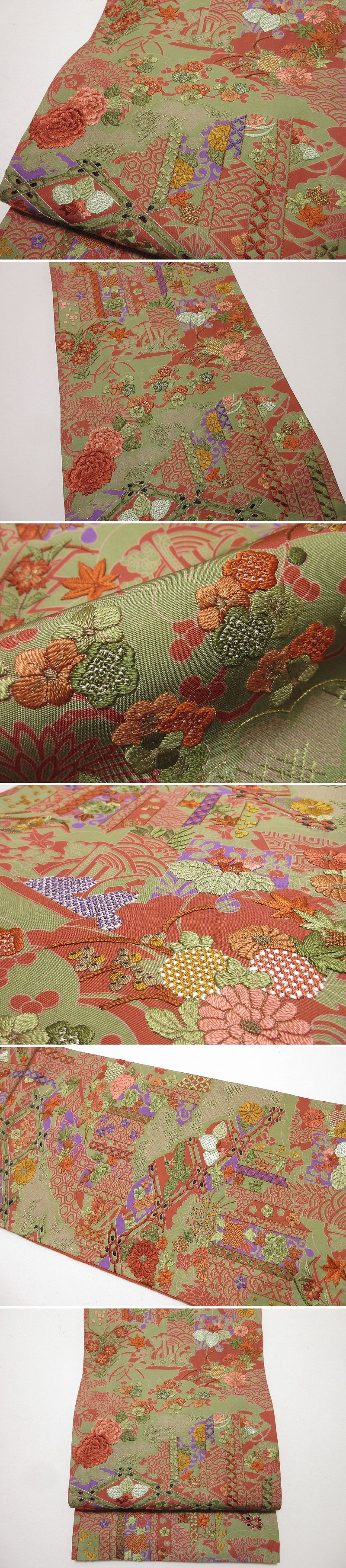 | 商品名 | ドークブア■六通柄袋帯 手刺繍 小袖写し 未使用 極上の逸品 B25 |
