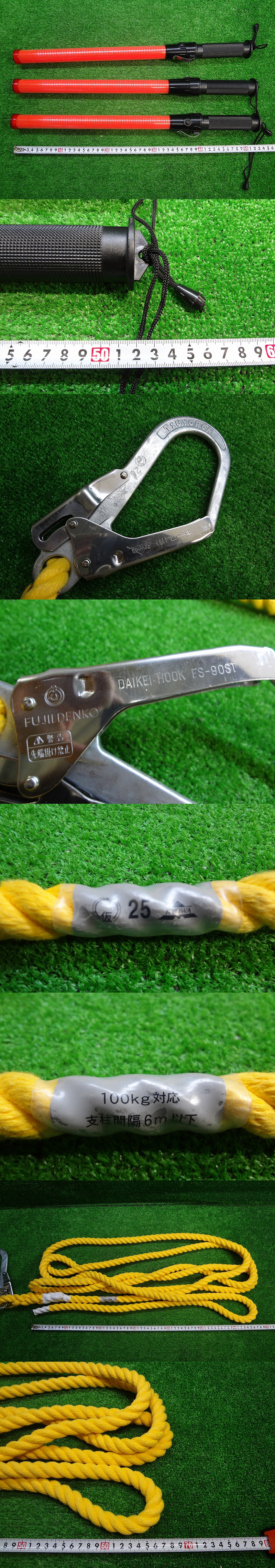 | 商品名 | ひろお1707■保安用品 工具セット■LED誘導灯 合図灯 3本■ツヨロン 親綱ロープ 片フック 25mm 長さ不明■赤色点滅 警備 防犯 工事現場 |