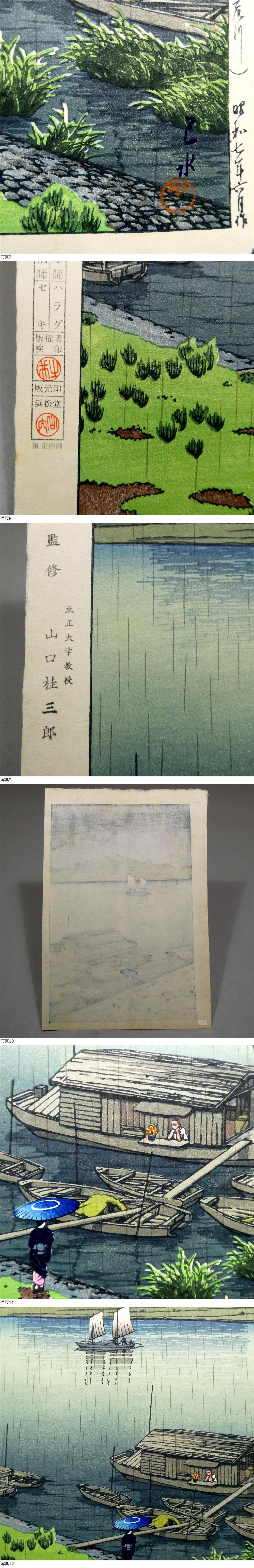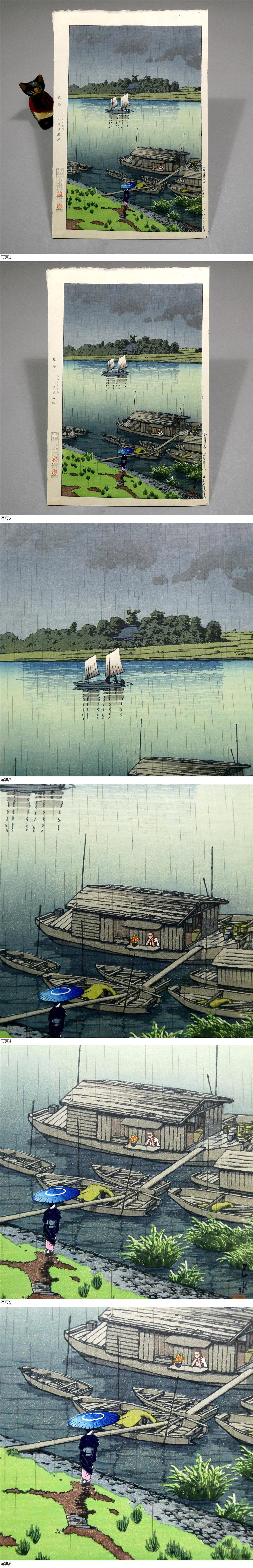 ■ 川瀬巴水 新版画 木版画作品 「五月雨(荒川)」 彫 ハラダ/摺 セキ 水と光の表現 ■
