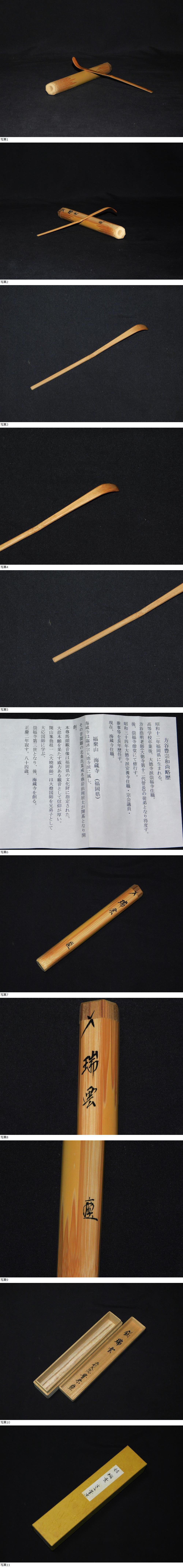 福聚山海蔵寺方谷豊宗和尚箱書の茶杓 銘「瑞雲」です。 一見してイタミ等ございませんが、 中古品の為、画像にてご判断の上、御入札ください。 状態は良好・美品です。 【寸法】 巾0.5㎝~1㎝、長18.4㎝ 【付属品】 ■箱:共箱■共布:無■作歴:有■ こちらの商品は梱包80サイズになります。 発送は下記表を参考に佐川急便・ヤマト運輸からお選び下さい。 沖縄県に関してはヤマト運輸のみの取り扱いとなります。 同梱発送をご希望の場合は、ご連絡頂ければ対応させて頂きます。 只、梱包サイズが変更する場合もございます。 方谷豊宗 1937年福岡県に生まれる。 高等学校卒業後、大徳寺派別格地 崇福寺住職。 方谷浩明老師(大徳寺第12代管長)の徒弟となり得度する。 後崇福寺僧堂にて修行する。 1959年大徳寺派安養寺住職・宗会議員・参事などを長年歴任する。 現在、福聚山 海蔵寺住職。 |