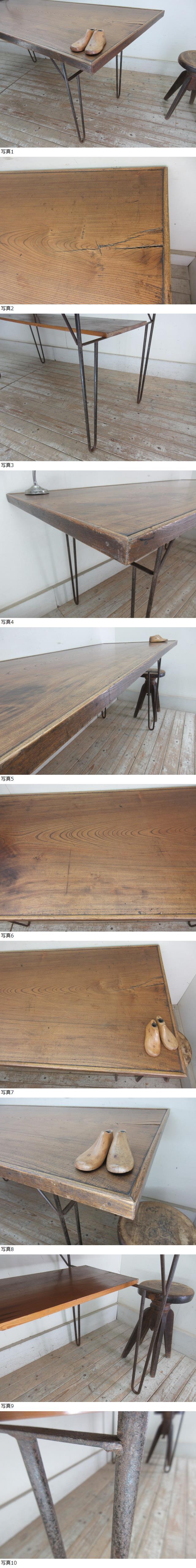 古い欅一枚板の大きな鉄脚テーブルK827    アンティーク家具作業台デスクカウンターダイニングテーブル店舗什器カフェ什器無垢材古家具 [浏览原始页面]