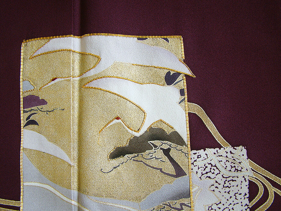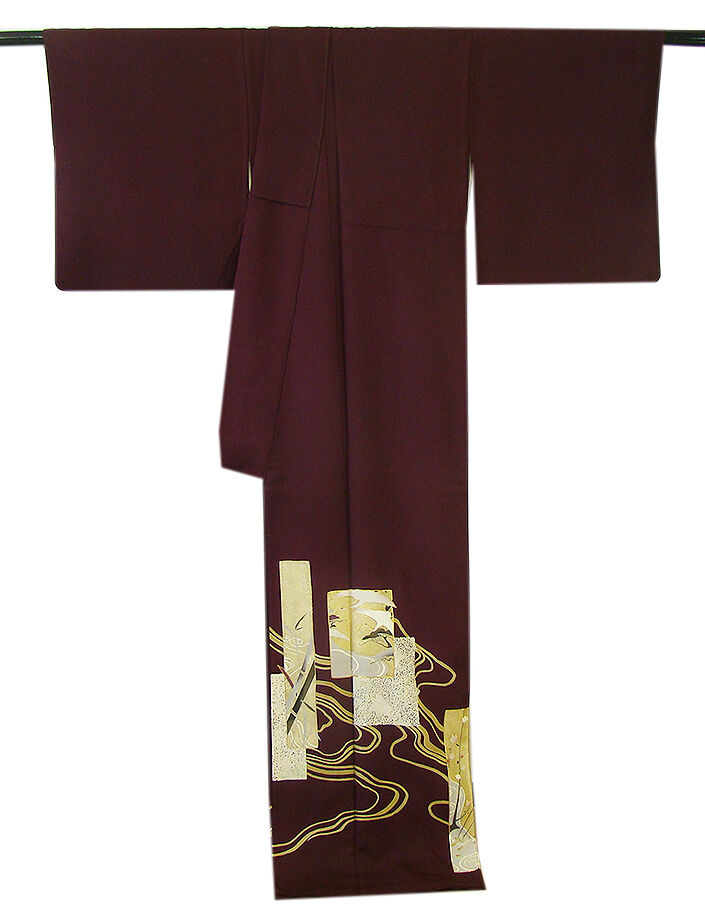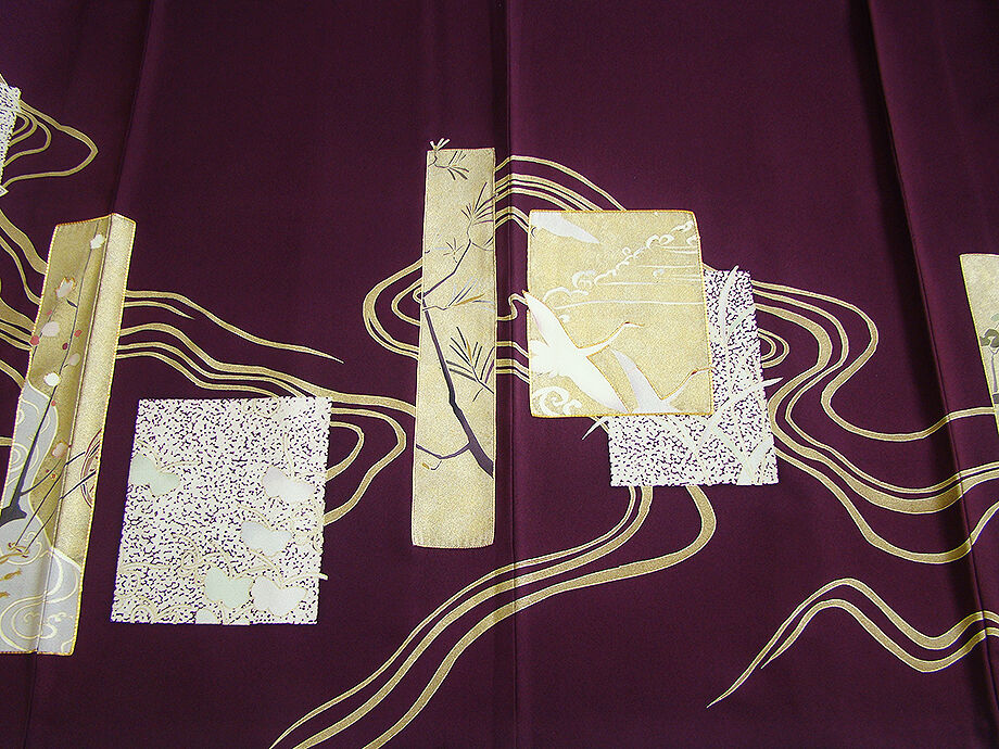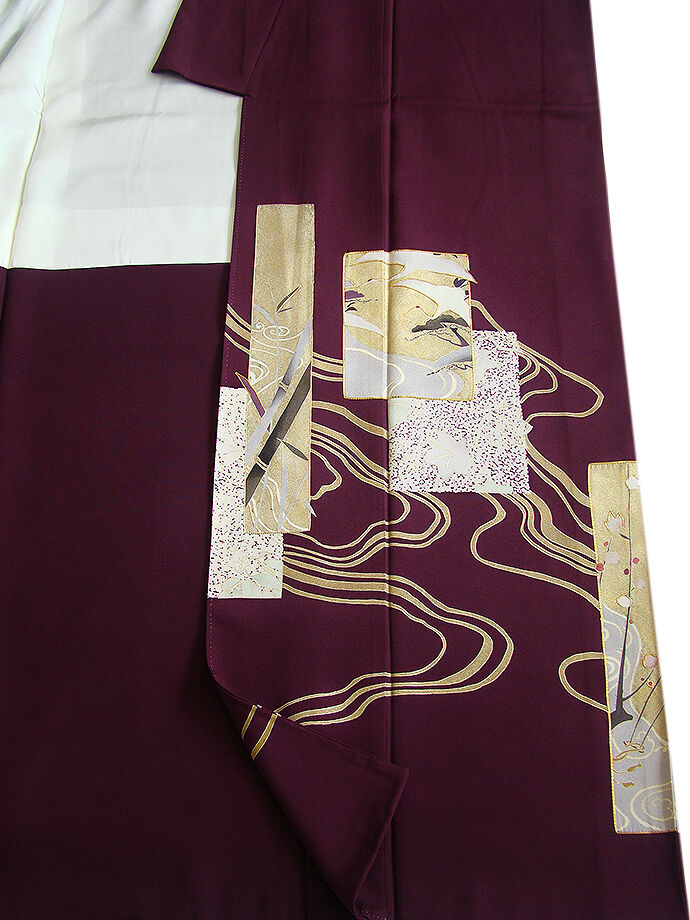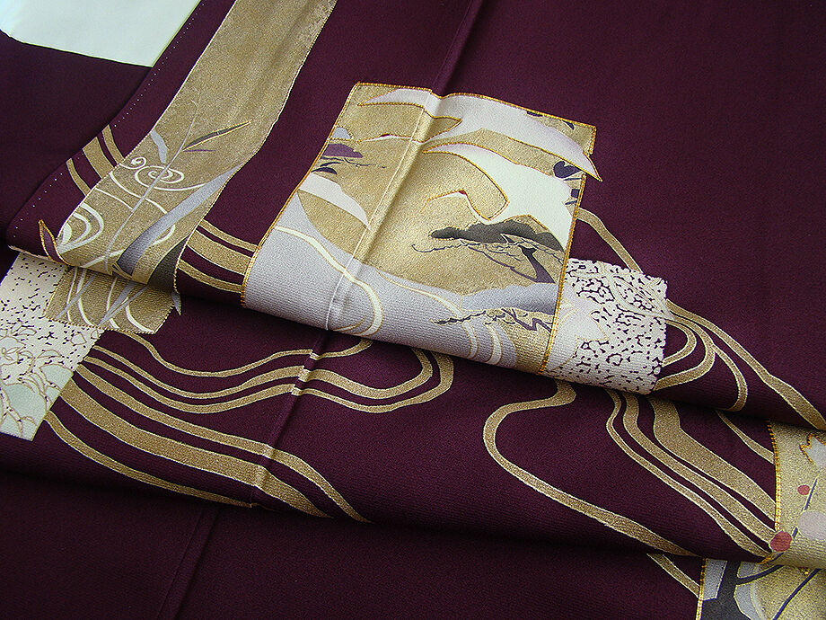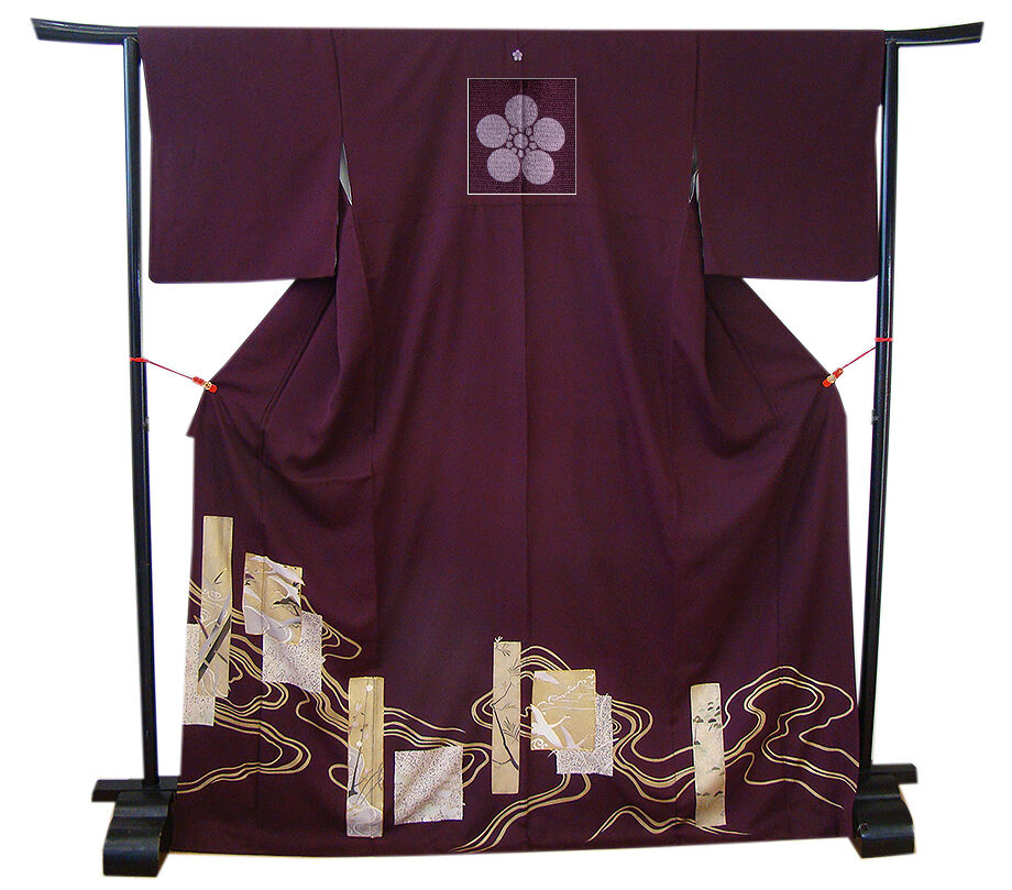 | 商品説明 | こちらのお品は「袷」でございますので、10月~5月にお召頂ければと思います。 しなやかな手触りのさらりと着心地良い滑らかで柔らかな重めの極上ちりめん地の生地、 渋い似せ紫色地に色紙文に鶴、流水、花草柄の染柄に金彩加工仕立てに金糸の縁取り、 八掛は共布に柄入り(正絹)、背に「梅鉢」の紋1ヶ、幅広い年代の方にお召頂けます。 |