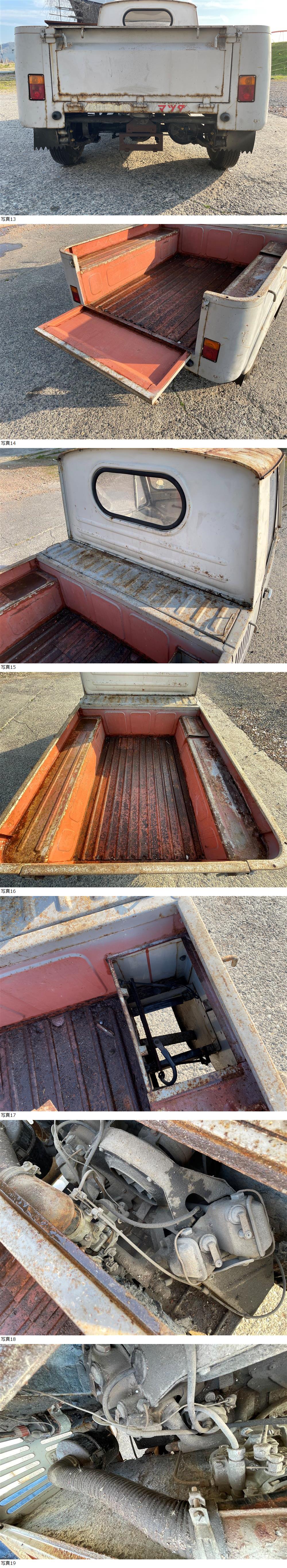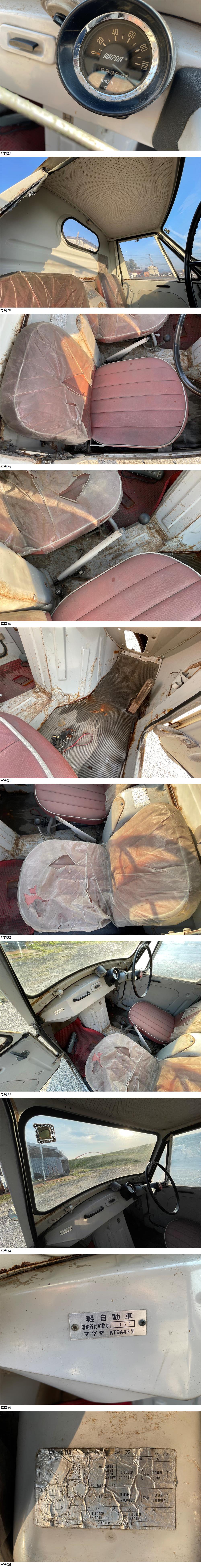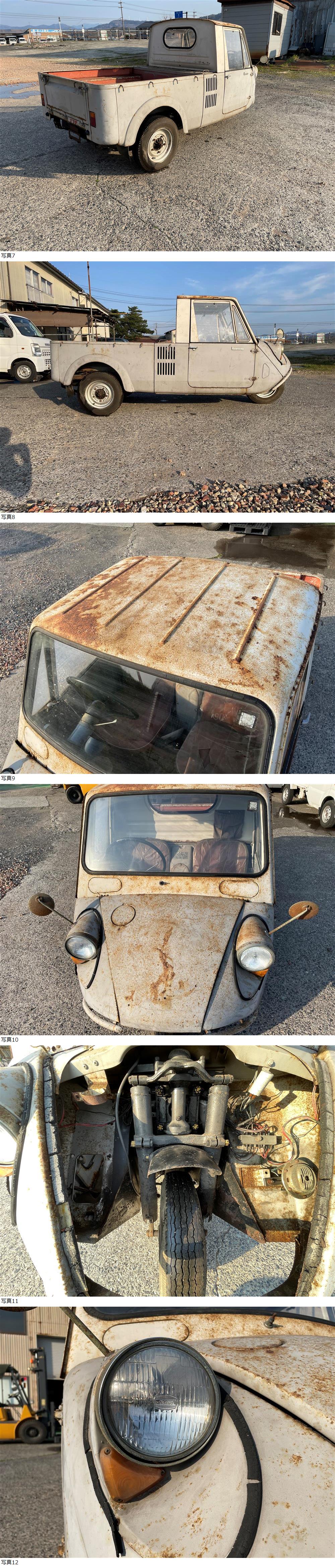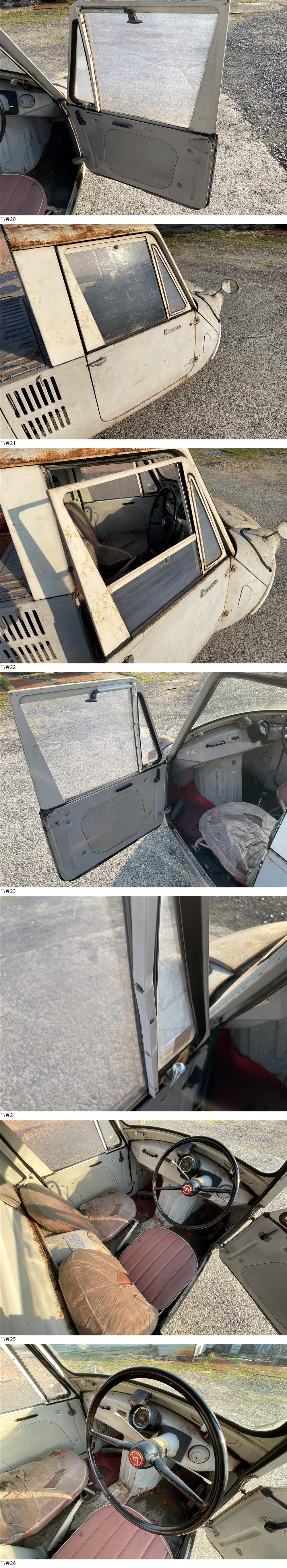 | 商品説明 | ※お客様へ こちらの車輛は、部品取り車になります。 品名:マツダ K360 商品構成:車輛本体のみ ※書類などなし 状態:不動車 こちらは不動車の部品取り車です。 屋内保管で当時物としては腐食も少ないと思います。 タイヤはボロボロですがエアー張れば転がる程度まで復活しました。 鍵ありません。動作確認などはしていません。 ゴム類(窓枠など)は劣化激しくポロポロ剥がれますが 個々のパーツはそれなりにしっかりしている印象です。 室内は特に保管状態良好です! レストア、部品取りにご活用ください。 こちら鳥取市より。 現車確認も可能です、自己紹介欄のアドレスへお問い合わせください。 引き取りかチャーター陸送でお願いします。 チャーター陸送は市町村まで問い合わせいただければ金額回答いたします。 遠方の場合は中継地点での引き渡しになる場合あります。 ※転がりますので積載車(ウィンチあり)かユニック吊りで積み込みください。 当方倉庫にはフォークリフトありますので積み込みは可能。 お引取りの場合は別途3,000円頂戴しますのでご了承ください。 |