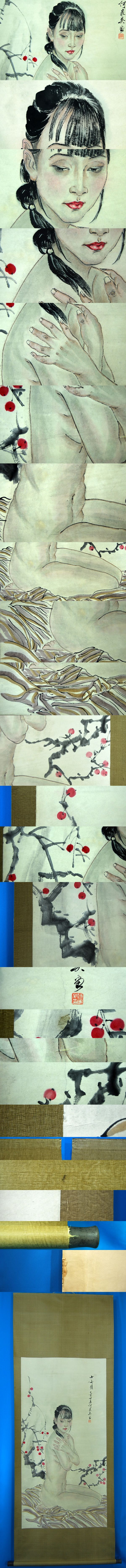 L20672 中国 銘・落款あり 家英 作 「少女情 裸婦画」掛軸 紙本 大判 水彩 肉筆 美人画 裸婦画 中国美術