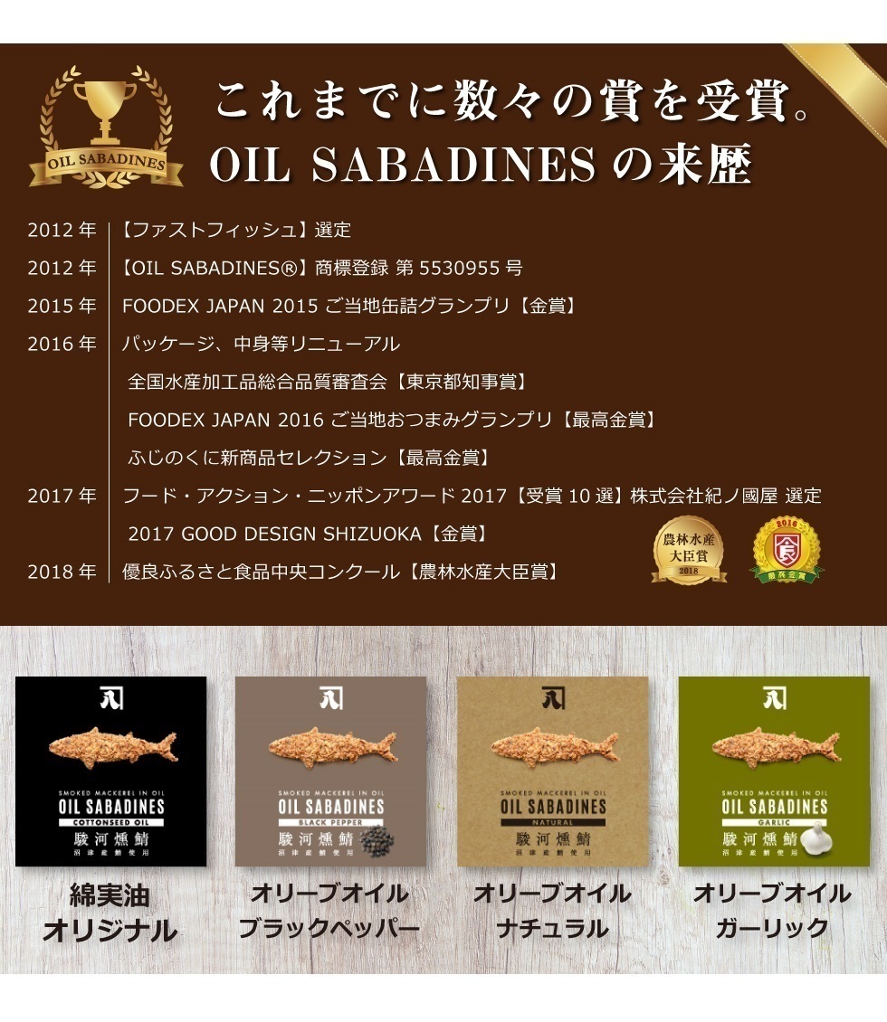 オイルサバディンは魚食普及活動(ファストフィッシュ)商品として水産庁に認定されています。 いままでありそうでなかったサバの味わいが生まれ、海の幸の宝庫「駿河湾」の新たな産物のひとつとして大きな可能性を秘めています。 この沼津の伝統製法でつくりあげた新しい味をお試しください。 | 出价者 | 信用 | 价格 | 时间 |