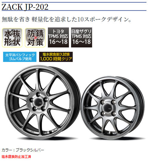 ジャパン三陽 ZACK JP202 ブラックシルバー 18インチ 5H114.3 7J+45 4本 73.1 業販4本購入で送料無料