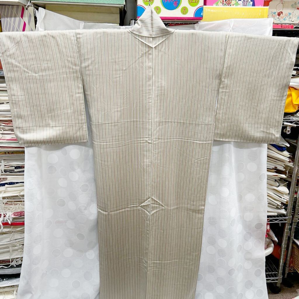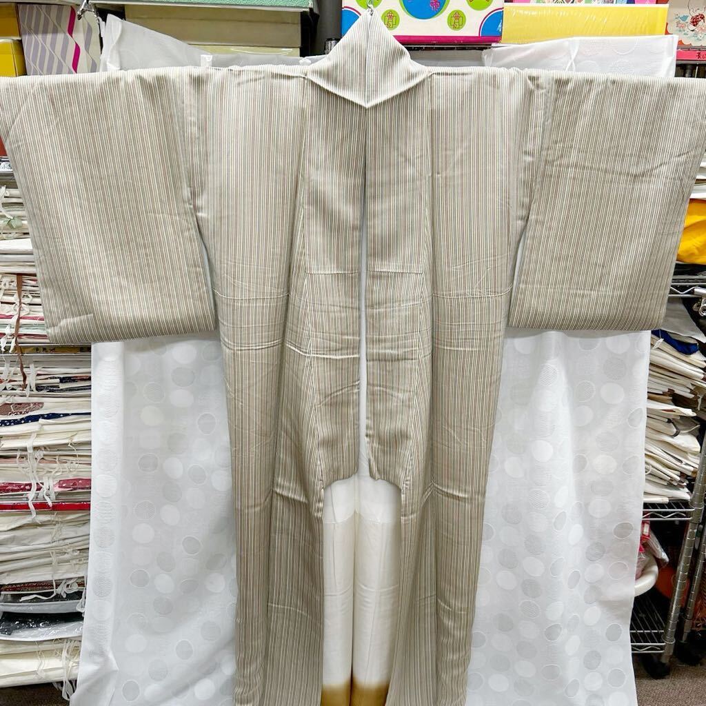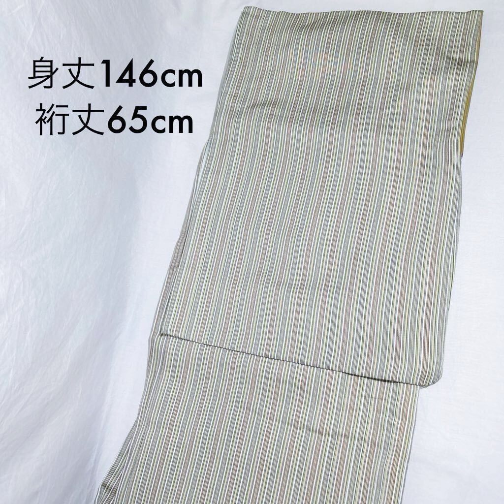 ★美品★ 小紋 着物 袷 縞 正絹 万筋 身丈146cm 裄丈65cm 手縫い 広衿 秋冬春 きもの レディース 女性 カジュアル 普段着 和装(09086②並
