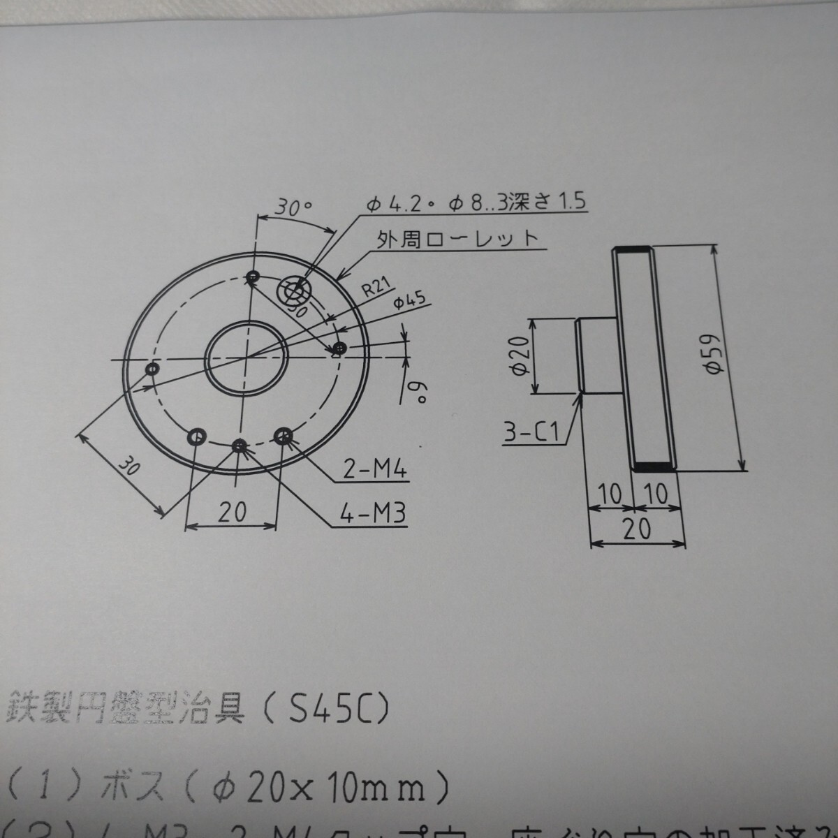 1)鉄製回転切削カッター治具(S45C) Φ59mm 厚み20mm (1 個)232g 中古品