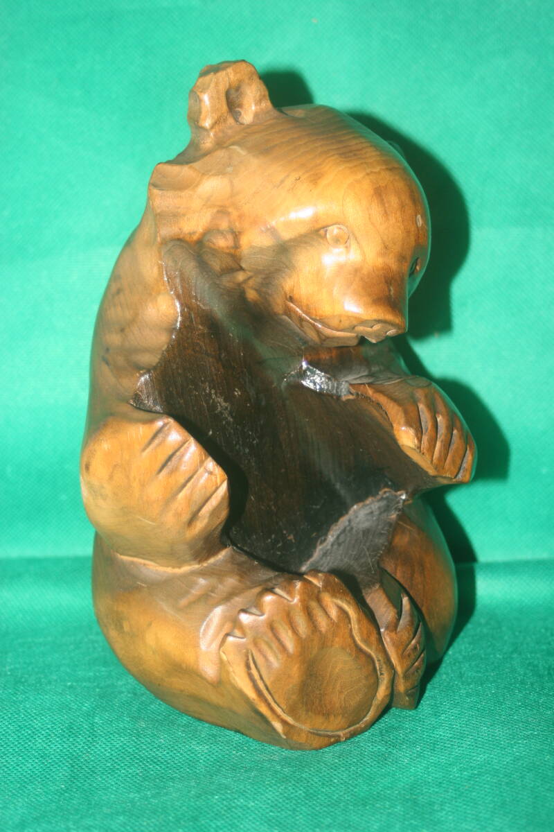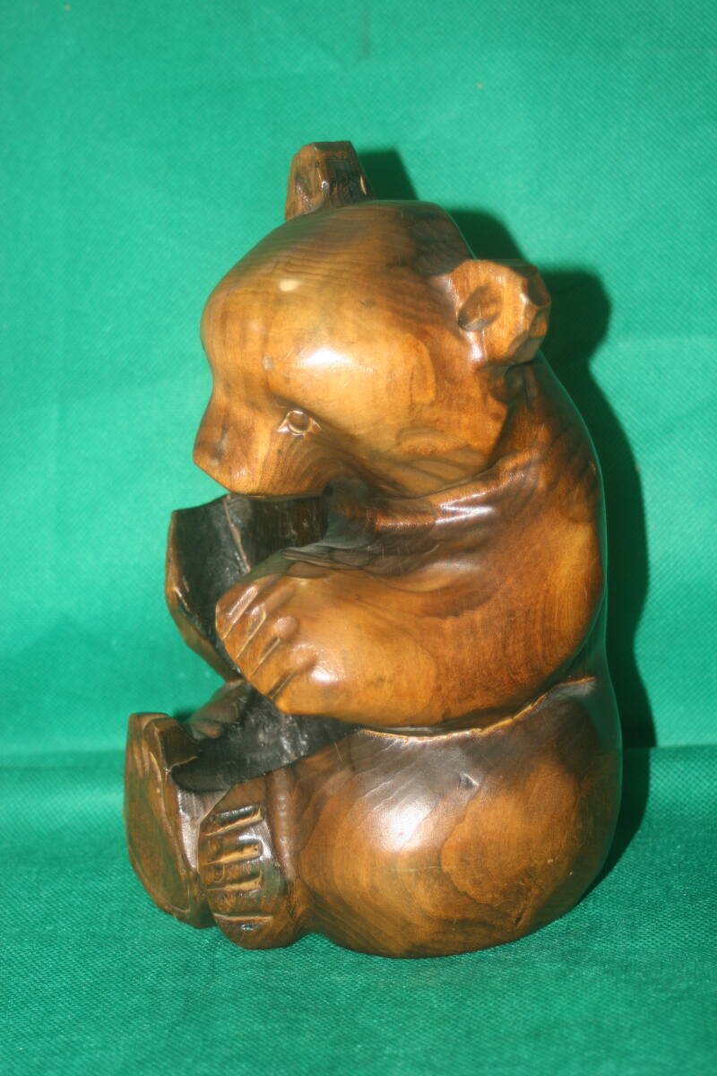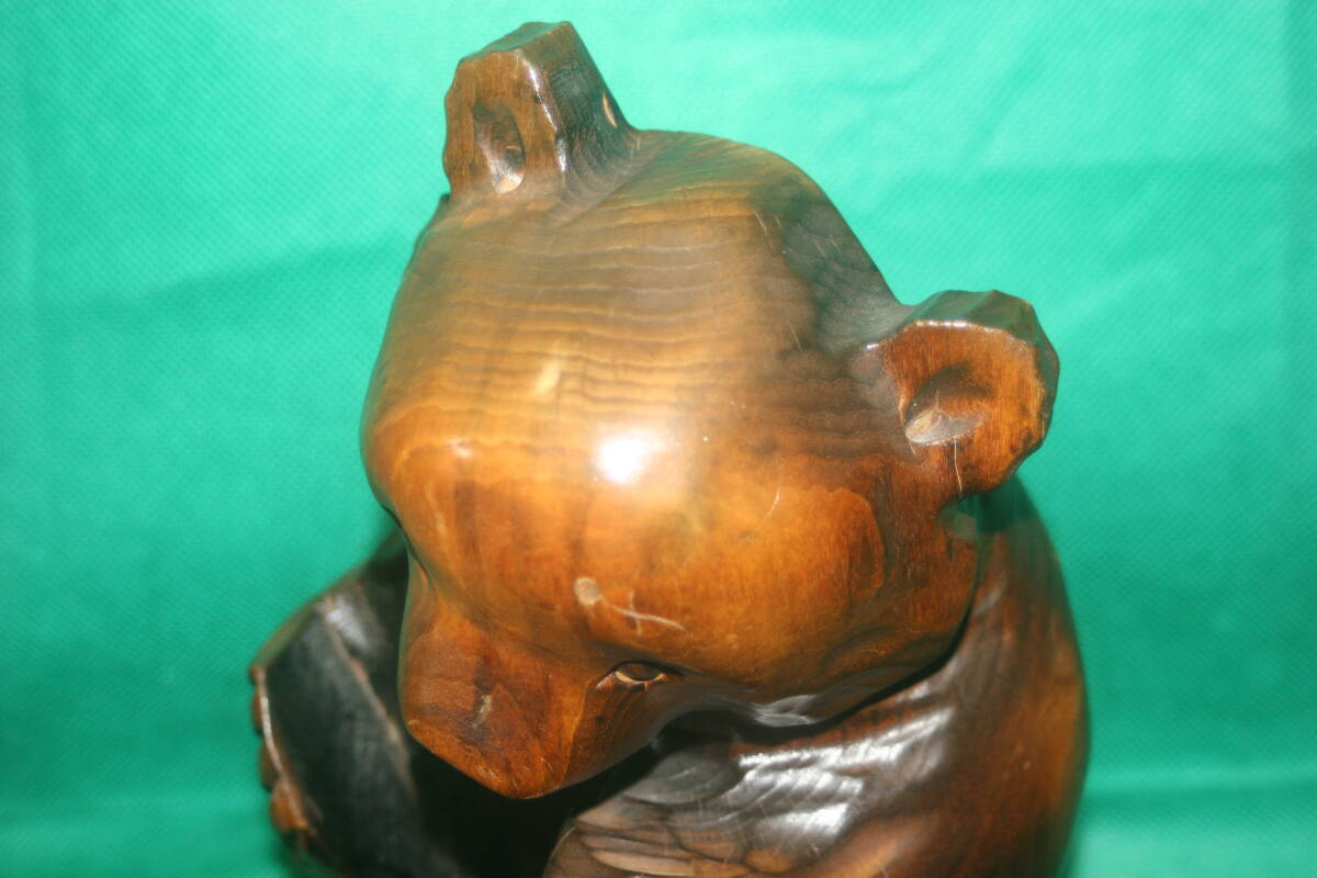 木彫り 熊 置物 ウイスキー抱きサイズ:25.5cm×20.5cm×20.5cm ウイスキーは小瓶です。 幅約5cmの小瓶が入ります。小傷あります、写真を良くご確認頂き、クレーム・返品はご容赦下さい。