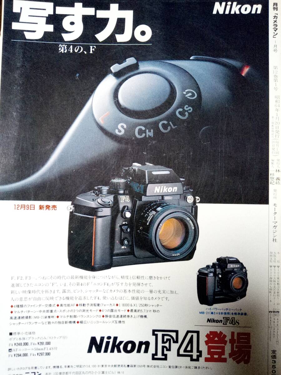 | 商品説明 | 月刊カメラマン 1989年1月号 経年劣化あります(モノクロページの焼け、傷、擦れ) シミが付いているページが有ります |
