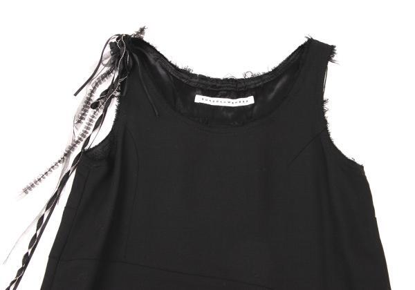 | スナオクワハラsunao kuwahara 裁ち切り切替ショルダー装飾ノースリーブチュニック 黒M |