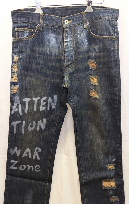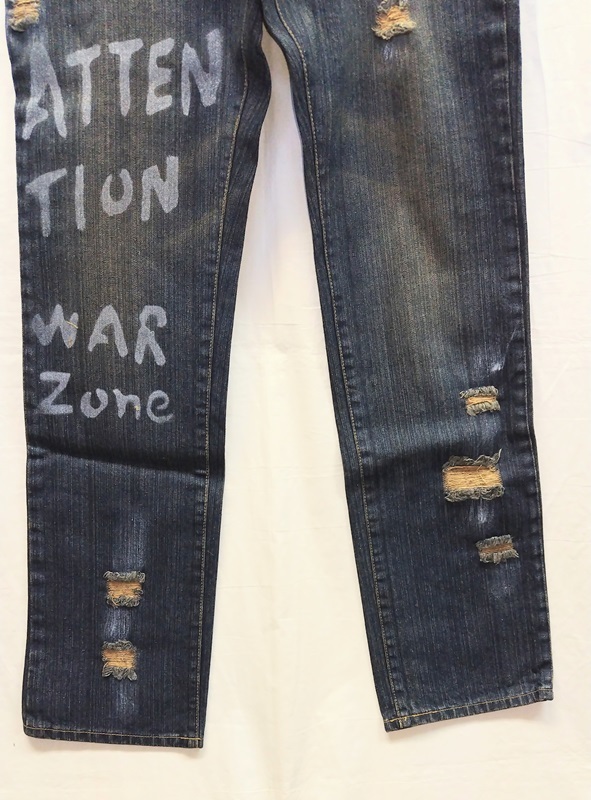 ダメージ&ペイントジーンズです。1804 新品 サイズ表示(82) 綿:100% 6色 (平置き実寸です)ウエスト:86cm 股上:27cm股下:81cm 裾幅:20cm ワタリ:29cmダメージ&ペイント入りのジーンズです。平置きで実寸を図ってあります。水曜日は定休日ですので、連絡、発送等の取引業務は