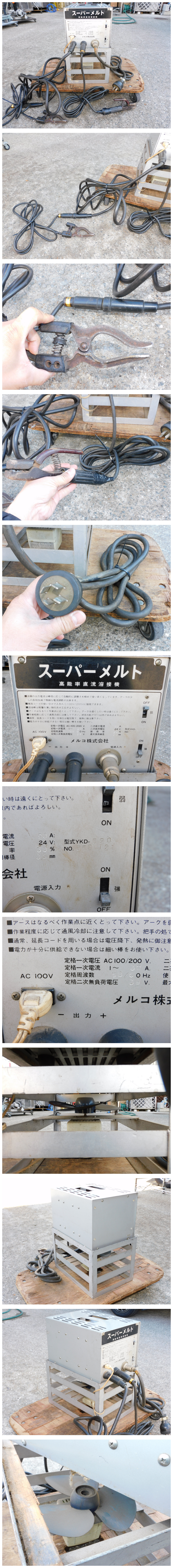 | 【メーカー/商品名】 メルコ スーパーメルト 高能率直流溶接機 YKD-320 50/60Hz 100V/200V 30A 棒32mm 使用率30% 下部ファン付き 【商品の状態】 動作おそらくOK 中古 こちら閉業されたようで使うタイミングがないとのことで仕入れました。 動作の方、スイッチを入れると中のファンが動く音がします。強弱と別々でスイッチがあります。 コードも古い溶接機は傷んでる物が多いですが、こちらは破れもなく綺麗です。 下の台にはファンがついてます。使用時には作動します。 こちらの環境もあり動作未チェックですが、おそらく通常使用は可能かと思われます。 もし故障していましたら返品お受けします(到着後2週間以内)。 コンセントの形状も確認しておいてください。 また付属品も他にはありません。 中古の場合は使用に伴う傷、汚れなどの使用感、保管中の環境での劣化、流通上の擦れなどはあるとお考えください。 写真で極力お伝えするようにはしておりますが、映りにくい傷や汚れもあるとお考え下さい。 清掃は致します。 付属品は基本的には写っている物以外は無しです(背景や台車は一切関係なし)。 ※神経質な方は入札をご遠慮ください! 使用に支障が無いような後ろや裏面の汚れが気になる方は入札をご遠慮ください。 またシビアな新規の方も入札をご遠慮ください。 【送料】 送料無料 (恐縮ですが沖縄や離島は発送不可です) 北海道はプラス料金(+500円)がかかります。 超小物サイズは定形外郵便、宅急便サイズは佐川急便、大型家電はヤマトのらくらく家財便になります。 集荷は毎日13時頃に佐川が来ます。それまでに入金確認ができればその日に、13時以降は翌日になります。 【当方へのお支払い】 落札代金+消費税 領収書の発行もご依頼があれば発行致します。代引きは不可です。 【直接引取の場合】 直接引き取りも大丈夫です 日曜、祝日以外の9時半から17時の間でお願いします。遅くなる場合は事前にお伝え下されば合わせるようにはします。 パワーゲート車がありますので重たい物も積込みは可能です。フォークリフトはありません。 当日現金払いでも大丈夫です。 【連絡事項】 (注)恐縮ですが、到着して2週間経ってからのクレーム等の対応は一切お受けできません。 2週間経つと故障しても、破損していても一切対応できません。その間どのような環境や扱い方をしたか分からないですし、こちらとしても完全に区切りを付けないと終わらないからです。 到着後、早急に動作確認や状態のチェックをお願いいたします。 ※何かございましたら評価を入れる前に連絡ください。対応はさせて頂きますので。もし悪い評価を先に入れられた場合、もうそこで終了と判断し対応は一切できませんので、お願い致します。 |
