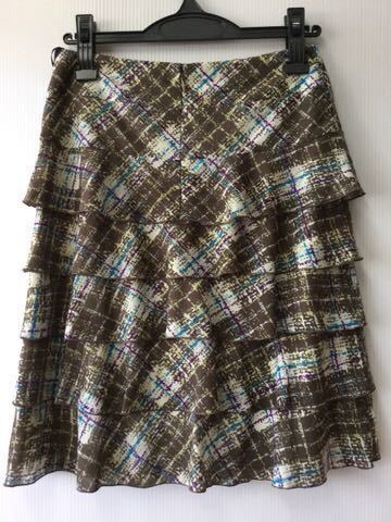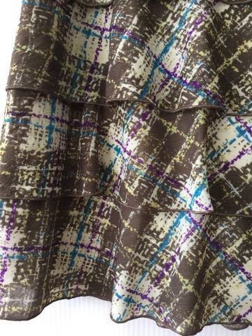 | 管理番号:112429 モザイク 茶系チェック ティアードスカート サイズ38 状態:未使用に近い 実寸(参考) ウエスト幅34cmほど、丈52cmほど |