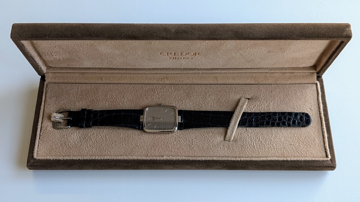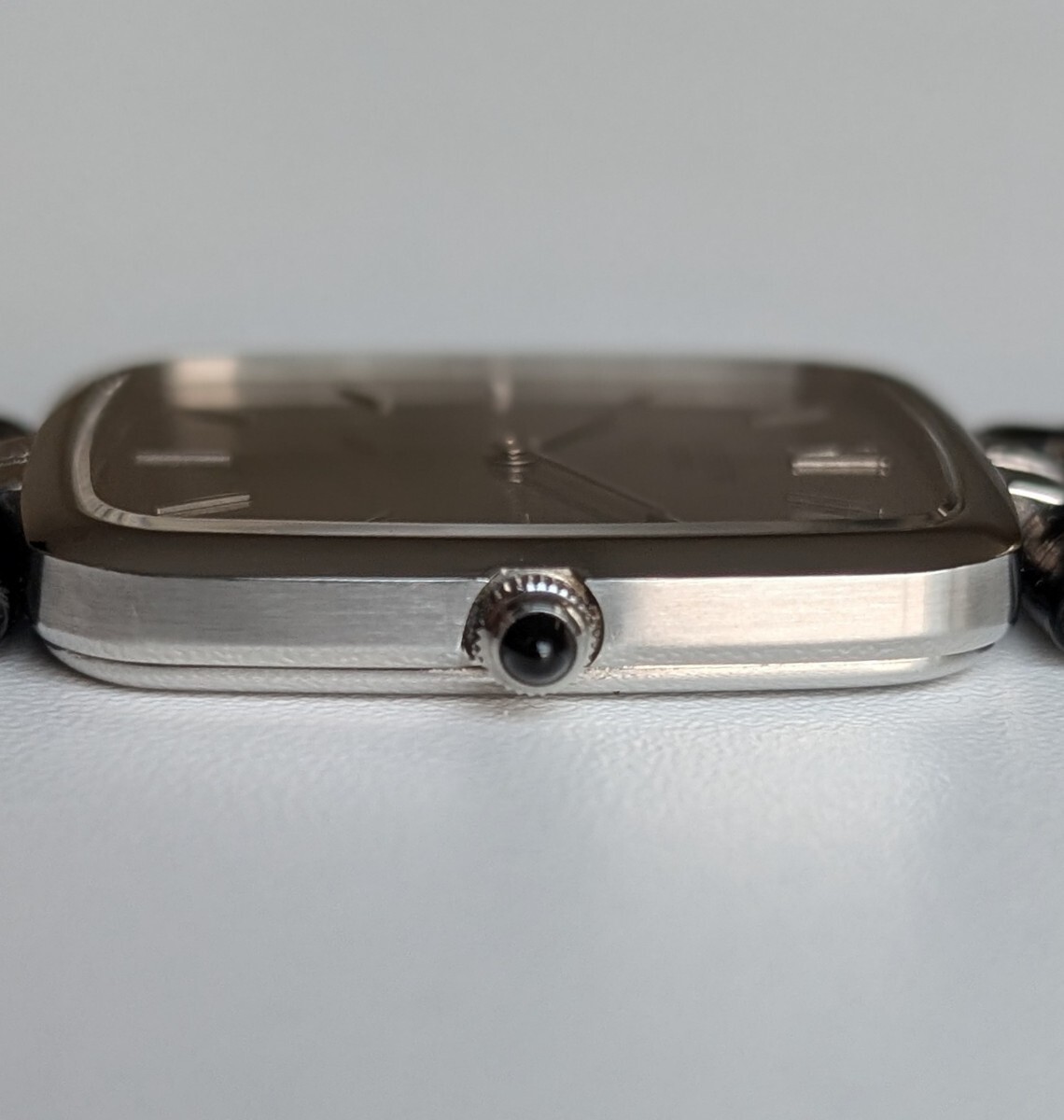 1979年のクォーツ時計ですが、現代でも通用するシンプルかつ普遍的なデザイン、時代に左右されない美しさですからフォーマル、カジュアル問わずどなたの腕元をも魅力的に輝かせモダンに仕上げていただけます。
