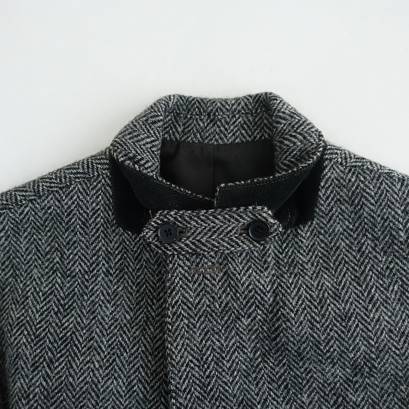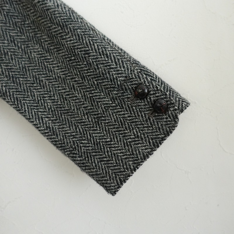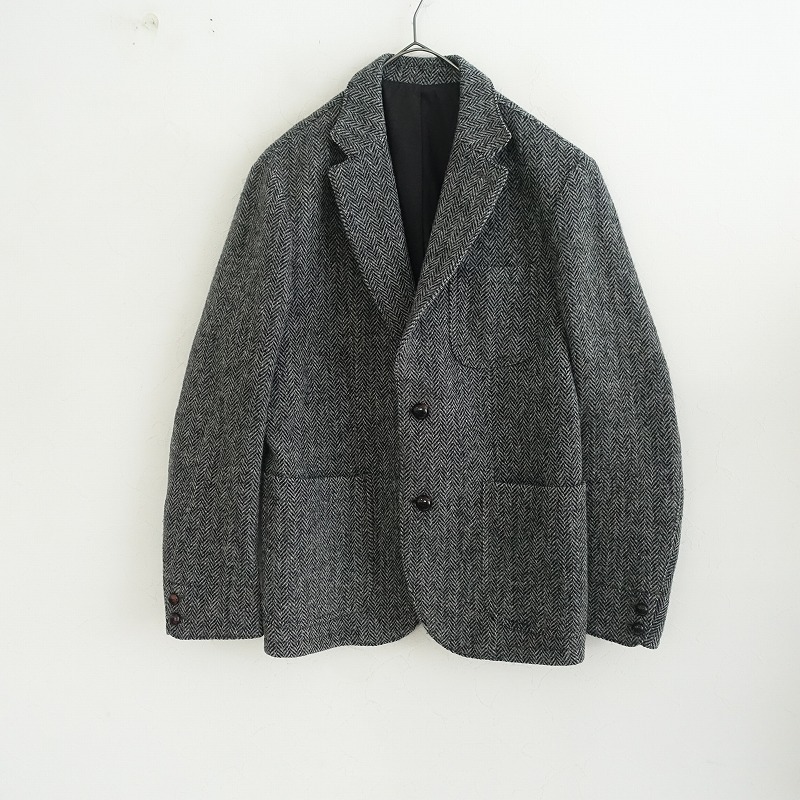 | MEN’S BIGIのCollective ハリスツイードテーラードジャケットです。カラーはブラック×ライトグレーのヘリンボーン柄、起毛がかった素材で、フロント&袖口ボタンです。前両腰&左胸&内両胸にポケットがあり、裏地付きで、バック裾にセンターベント・袖口内側にブラックのコーデュロイ・チンストラップが施されております。 |