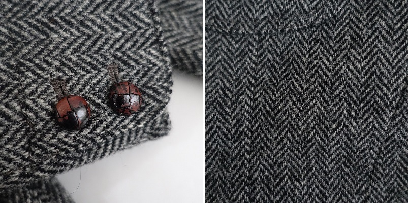 | 表地-毛100% 裏地-ポリエステル65%,綿35% 袖裏-ポリエステル100% 別布-綿100% |