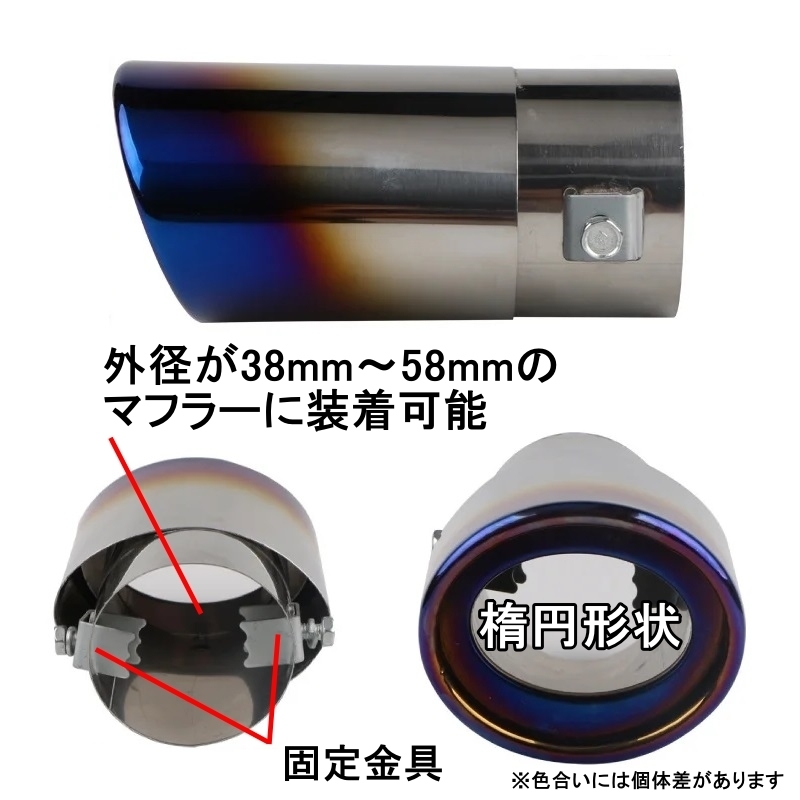 | 商品内容 汎用マフラーカッター 特徴 ・装着可能マフラー外径:38mm~58mm ・出口数:1 ・テール形状:楕円形状 ・テールカット:斜め ・取付角度:ストレート ・材質:全タイプステンレス製になります ・選べる4タイプ:シルバー/チタンブルー/マジョーラ/ブラック(塗装済) ※チタンブルーとマジョーラは色合いに個体差があります 適合確認 ※タイトルにある車種は参考車種になります。 ※タイトルにある車種でも排気量やグレードによって マフラーの外径やリアバンパーの形状が異なります。 必ずマフラーの外径とリアバンパー形状 及び商品の寸法をご確認ください。 取付に関する注意事項 ・専門業者様による取付を推奨しております。 ・火傷防止のためマフラーが冷えた状態で作業してください。 ・脱落防止のため定期的に増し締めしてください。 ・取付、使用に関わるケガ、事故等につきまして 弊社は一切の責任を負いかねます。 |