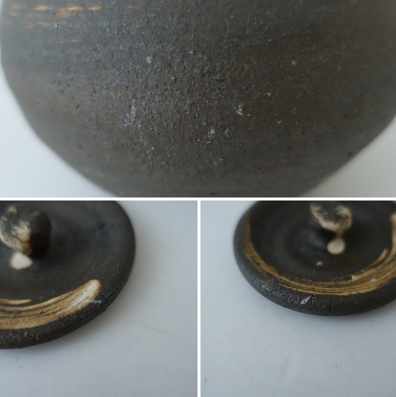 | 田宮亜紀さんの蓋物です。 内側から土の深みが滲み出るようなものを目指し、日々制作されている田宮さん。 焼き物の原点に近いその姿は、くらしの原風景を彷彿とさせてくれます。 |