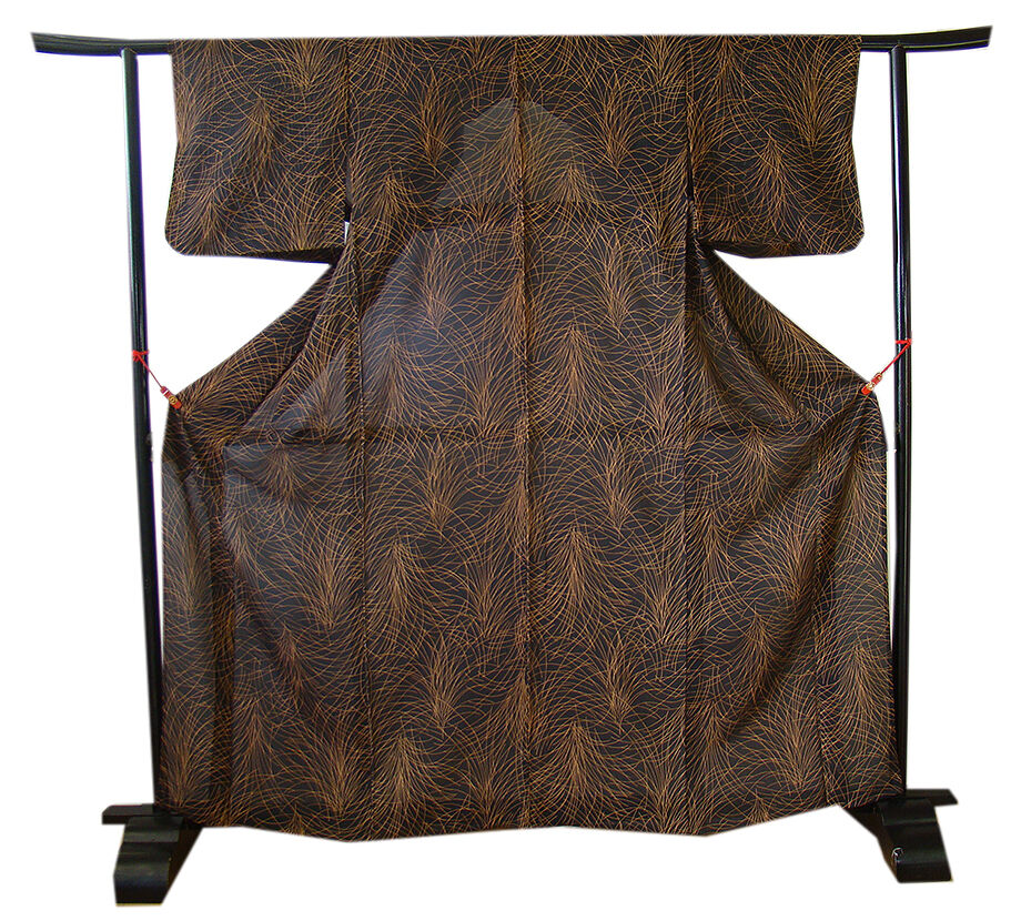 | 商品説明 | こちらのお品は夏物でございますので、7月~8月にお召頂ければと思います。 「絽」と言えば、紗と双璧を成す夏のお着物の生地で その最大の魅力は絶妙の透かし加減でございます。 清涼感溢れる地の風を通すしなやかさは夏に着物を着るという贅沢を 快適に愉しませてくれることでしょう。 着物には、大きく分けて「袷(あわせ)の着物」と「単衣(ひとえ)の着物」と「夏着物」があります。 反物(表地)を着物に仕立てるときに、裏地類をつけるものを袷の着物、 つけないものを単衣の着物と呼び、胴裏や八掛といった裏地がつかない一枚ものの着物です。 また裏地がないため、座る時などにヒップのラインが目立たないよう、 居敷当て(いしきあて)の生地をつけることもあります。 居敷当ては付いておりません。 とてもしなやかなさらっとした肌触りが極上の着心地を誘う滑らかな「駒絽」の生地、 黒色地に狐色の線書きの染柄が洒落感溢れ小粋な着物姿を演出しております。 |
