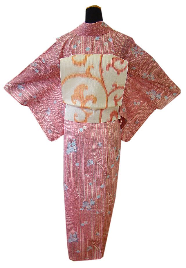 | 商品説明 | こちらのお品は夏物でございますので、7月~8月にお召頂ければと思います。 「絽」と言えば、紗と双璧を成す夏のお着物の生地で、 その最大の魅力は絶妙の透かし加減でございます。 清涼感溢れる地の風を通すしなやかさは夏に着物を着るという贅沢を 快適に愉しませてくれる事でしょう。 着物には、大きく分けて「袷(あわせ)の着物」と「単衣(ひとえ)の着物」と「夏着物」があります。 反物(表地)を着物に仕立てるときに、裏地類をつけるものを袷の着物、 つけないものを単衣の着物と呼び、胴裏や八掛といった裏地がつかない一枚ものの着物です。 また裏地がないため、座る時などにヒップのラインが目立たないよう、 居敷当て(いしきあて)の生地をつけることもあります。 居敷当ては付いておりません。 しなやかな手触りの滑らかなさらっとした肌触りは絹と間違ってしまいそうな「絽」の 洗える高級「ポリエステル」の生地で涼やかな風合いを醸しております。 紅梅色地に白藤色のたたき染に花草柄の染柄が洒落感溢れる華やかな 着物姿を演出しております。 帯は「ポリエステル」のなごや帯(六通柄)でしなやかで扱い易く〆易く、 薄卵色地に赤、橙色の織柄がお顔映りも明るい粋な帯姿を奏でております。 帯〆は「正絹」の平組、退紅、白、銀糸等の編み込みの組紐(中国製)となっております。 |